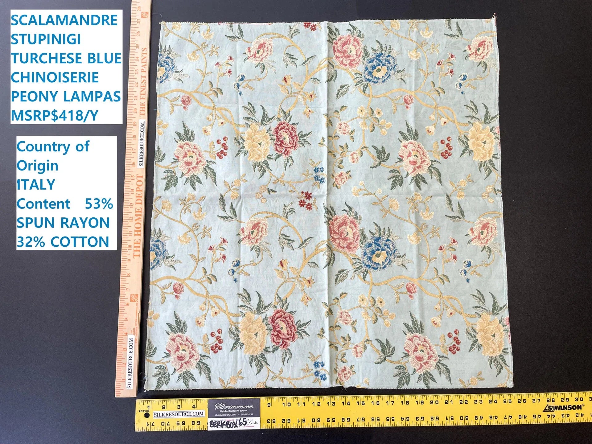 12 Berkbox65 SQUARE Scalamandre STUPINIGI Blue Chinoiserie Peony Lampas Floral MSRP USD418/y