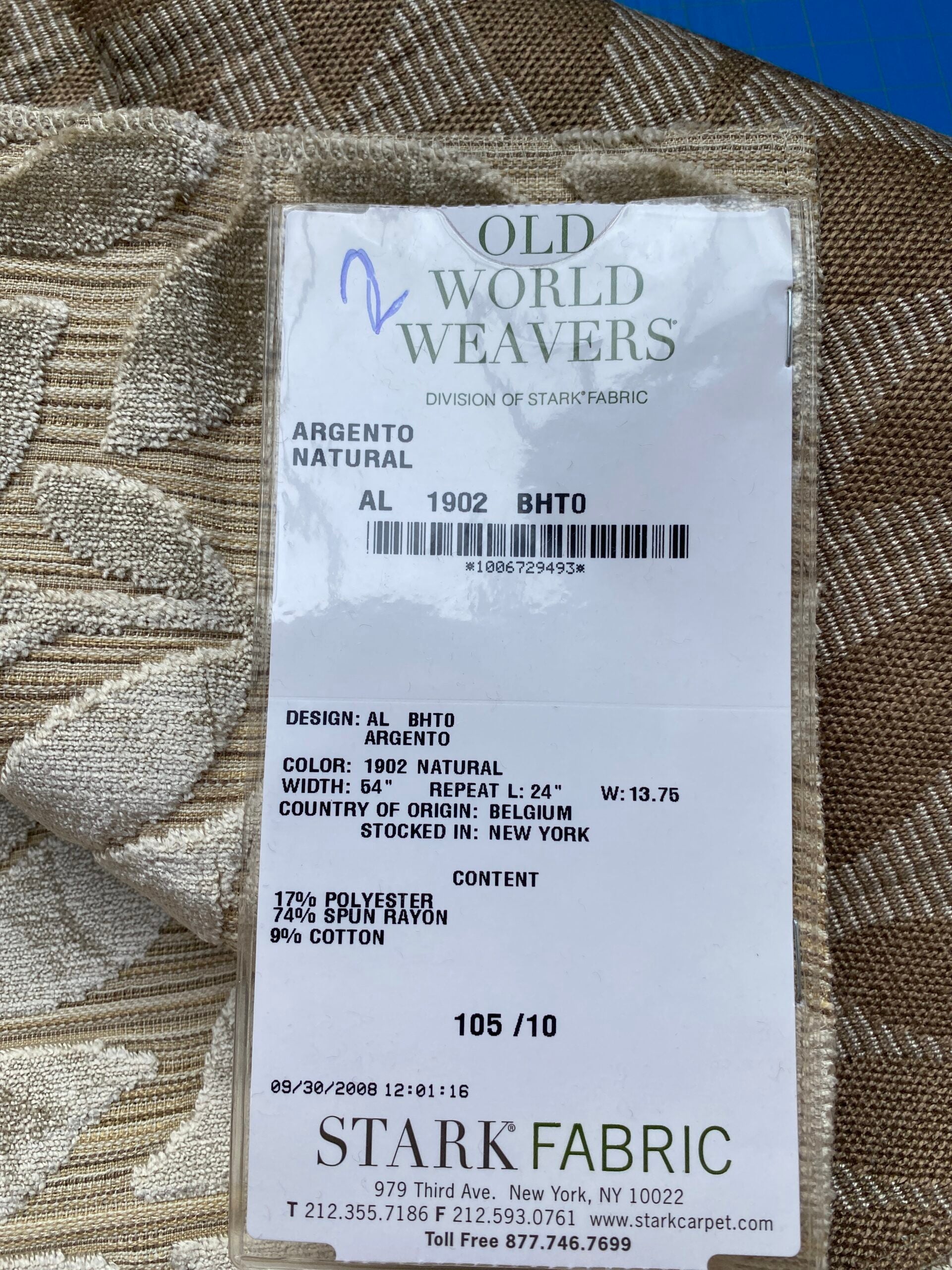 Fiber, repeat, width, weight, country of origin, WHOLESALE price/yard: