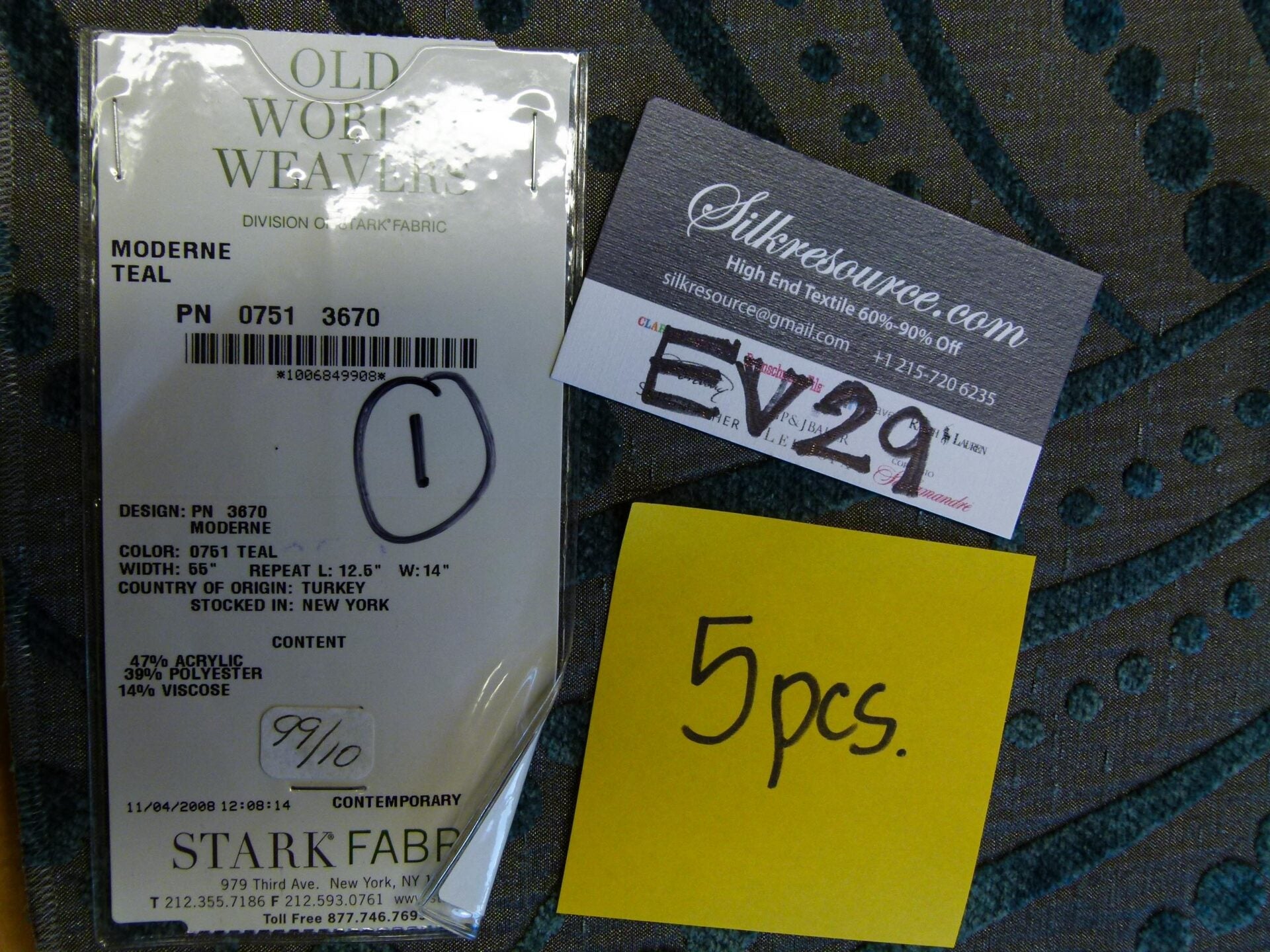 13 EV29 Scalamandre Old World Weavers Moderne Teal Gray Blue Art Deco 5 Pieces 27"x27"