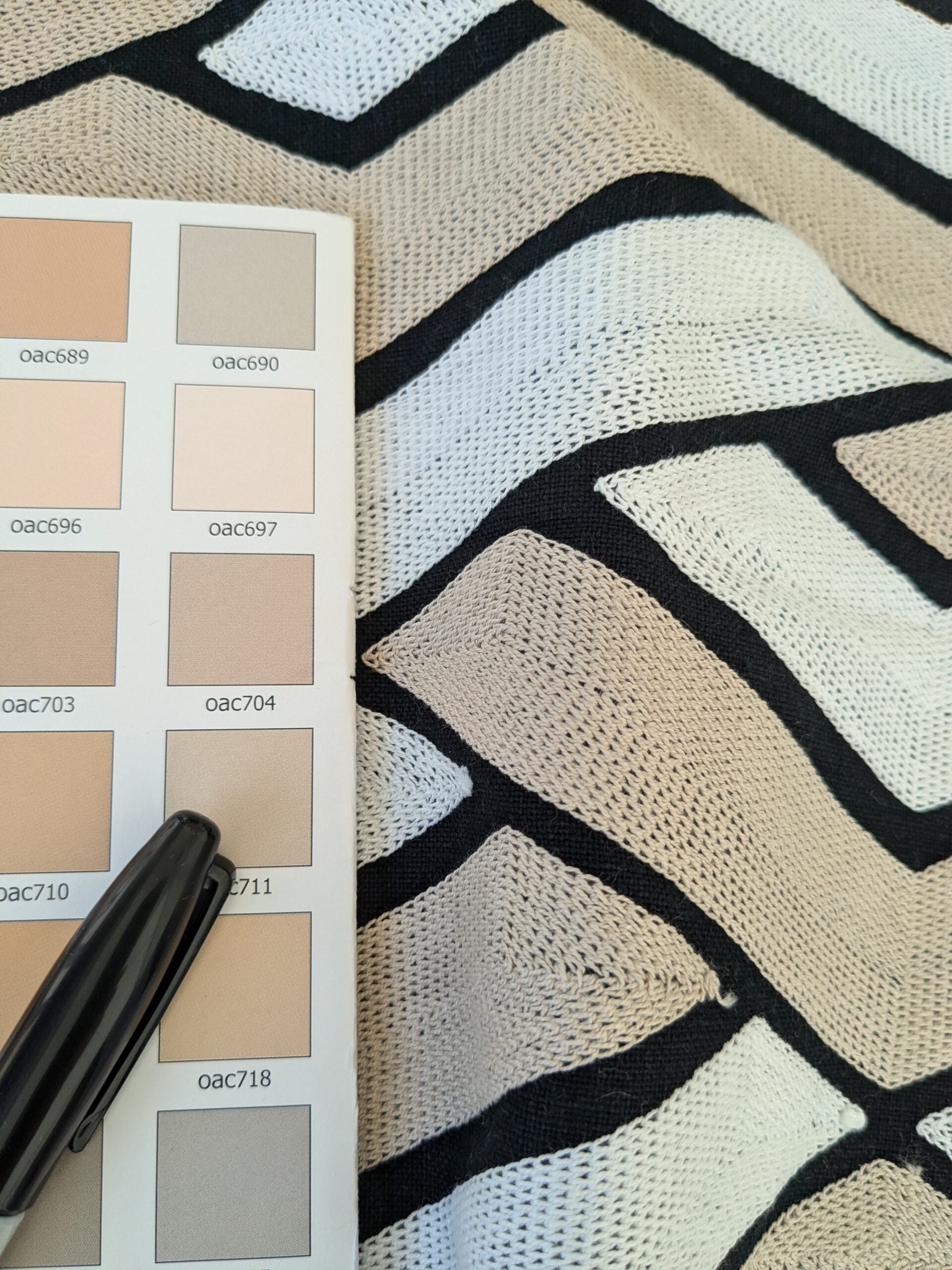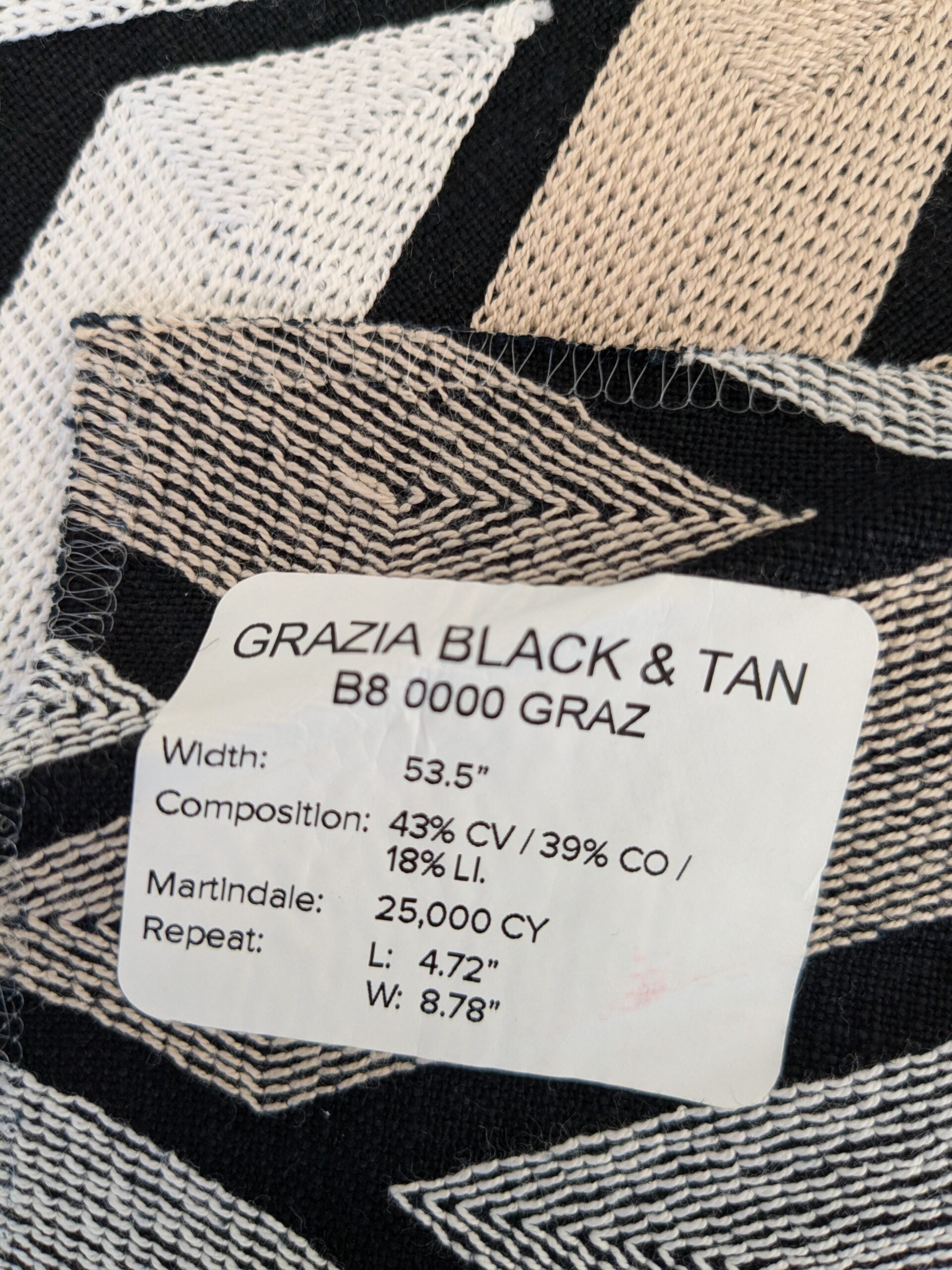 12 EV47 Square Scalamandre Alhambra Grazia Black and Tan Geometric Abstract Embroidery