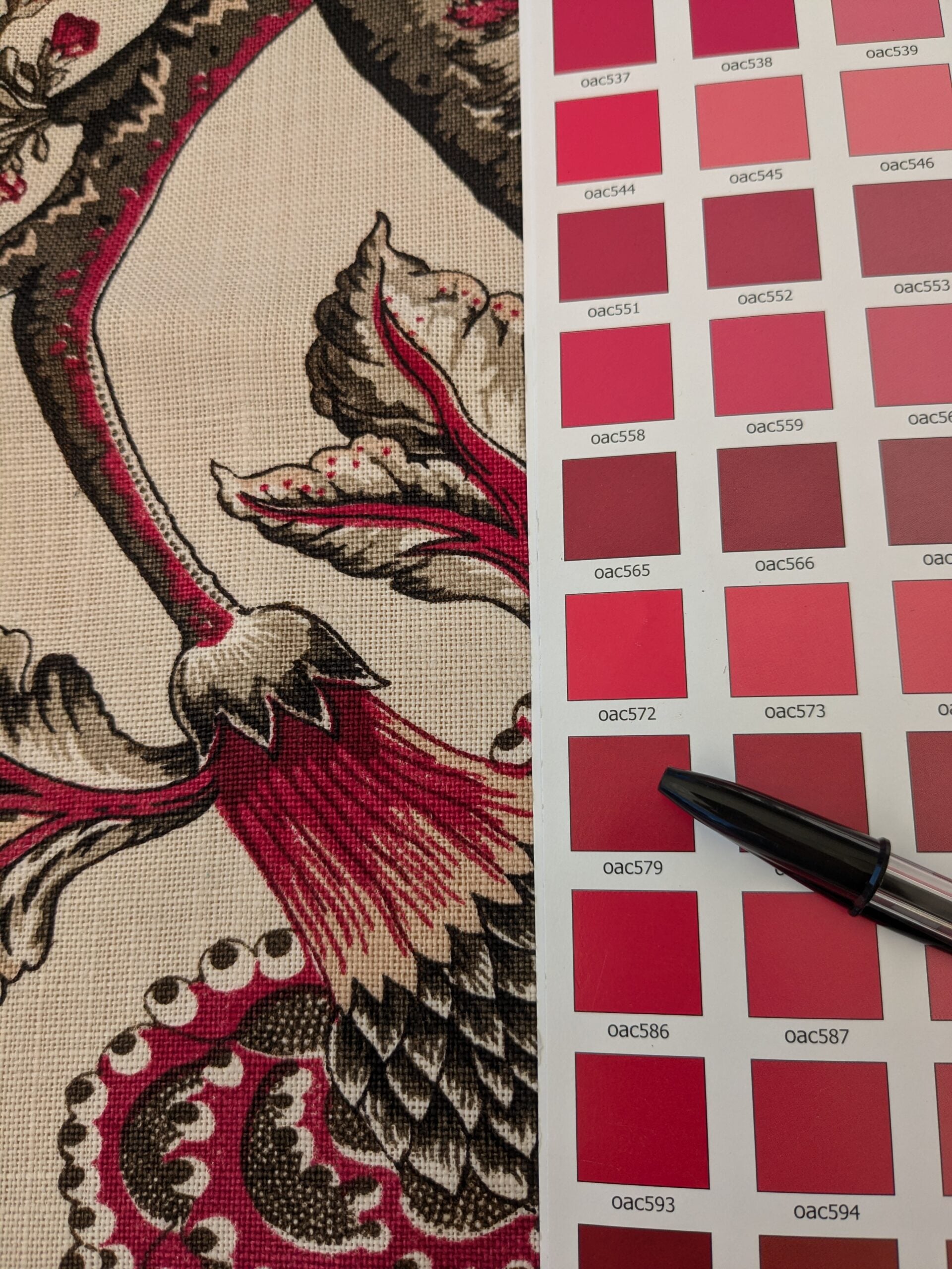 124 EV47 Square Scalamandre Pondicherry Linen Print Raspberry Red Brown on Beige Bird Animal Jacobean Bird Animal MSRP USD 292/y 26"x27"