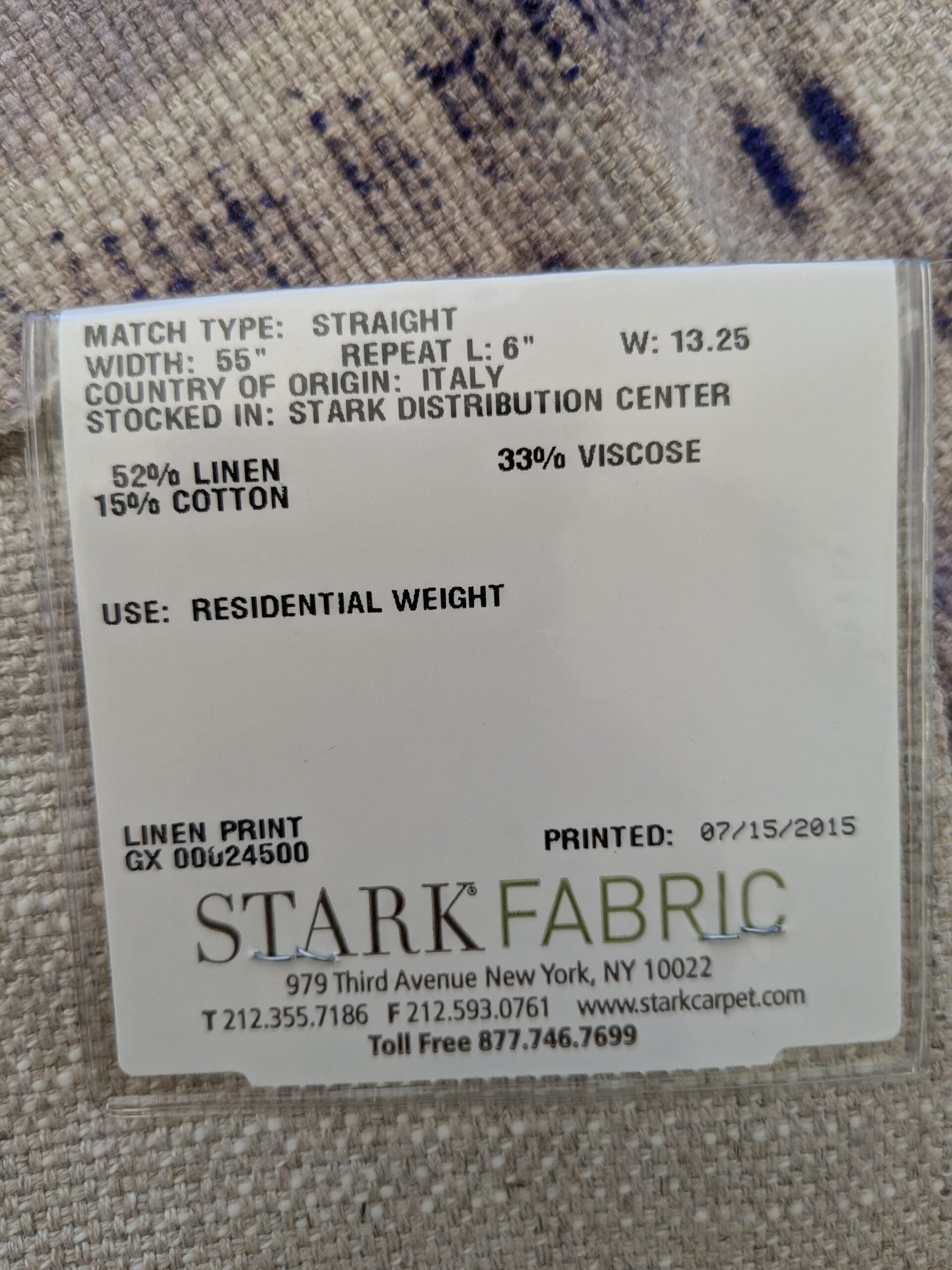 Fiber, repeat, width, weight, country of origin, WHOLESALE price/yard:
