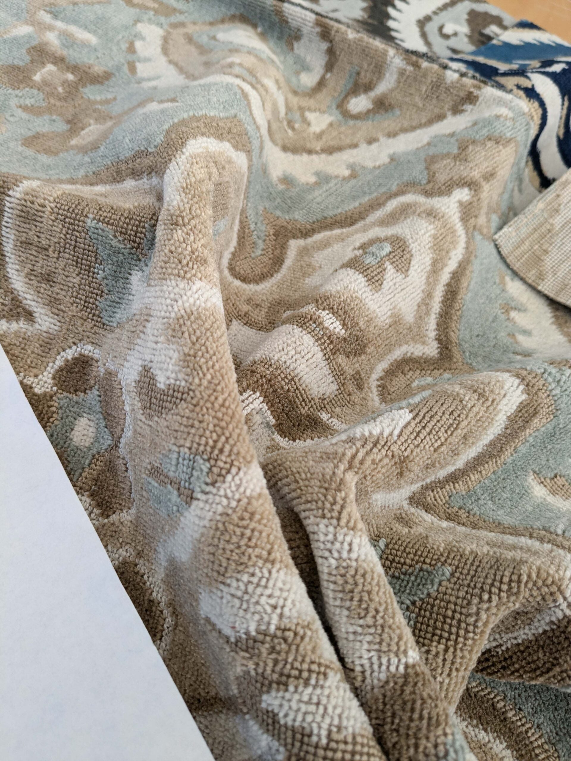 100 EV50 27" x 24" Square Scalamandre Oushak Linen Velvet Aquamarine Jacquard Blue Brown Linen MSRP USD638/y