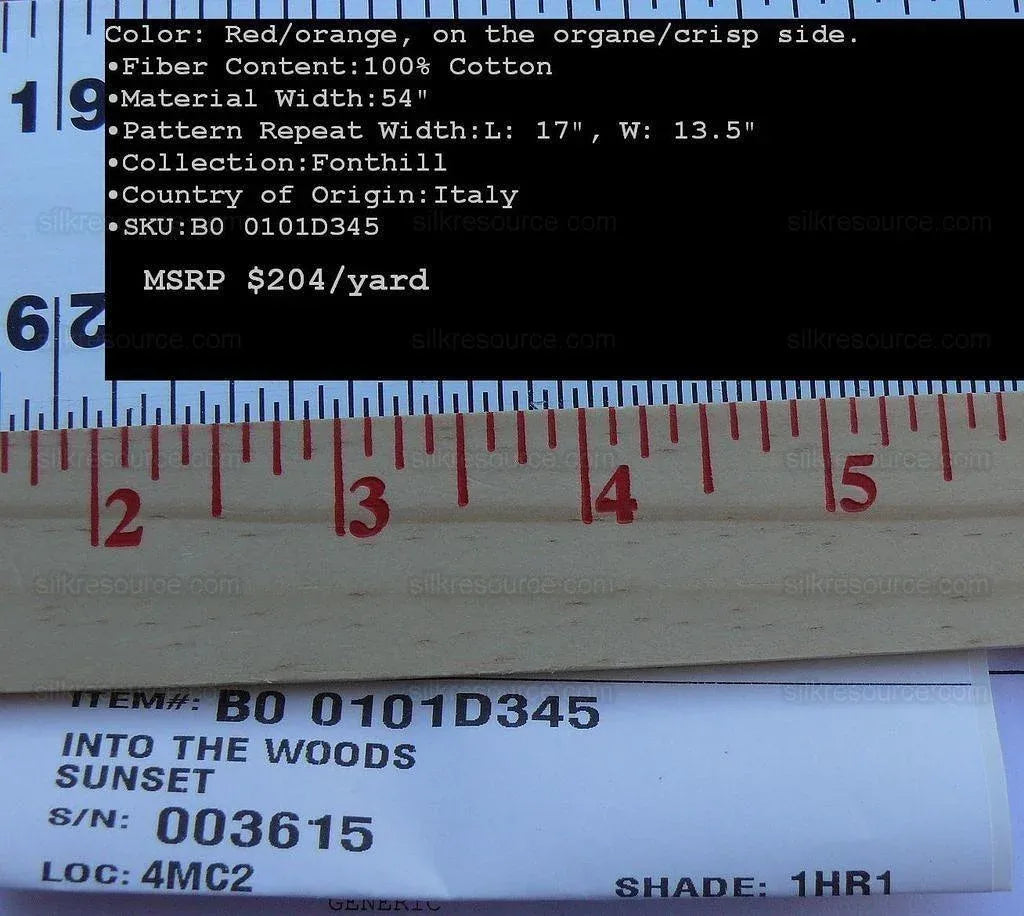 Fiber, repeat, width, weight, country of origin, retail price/yard: