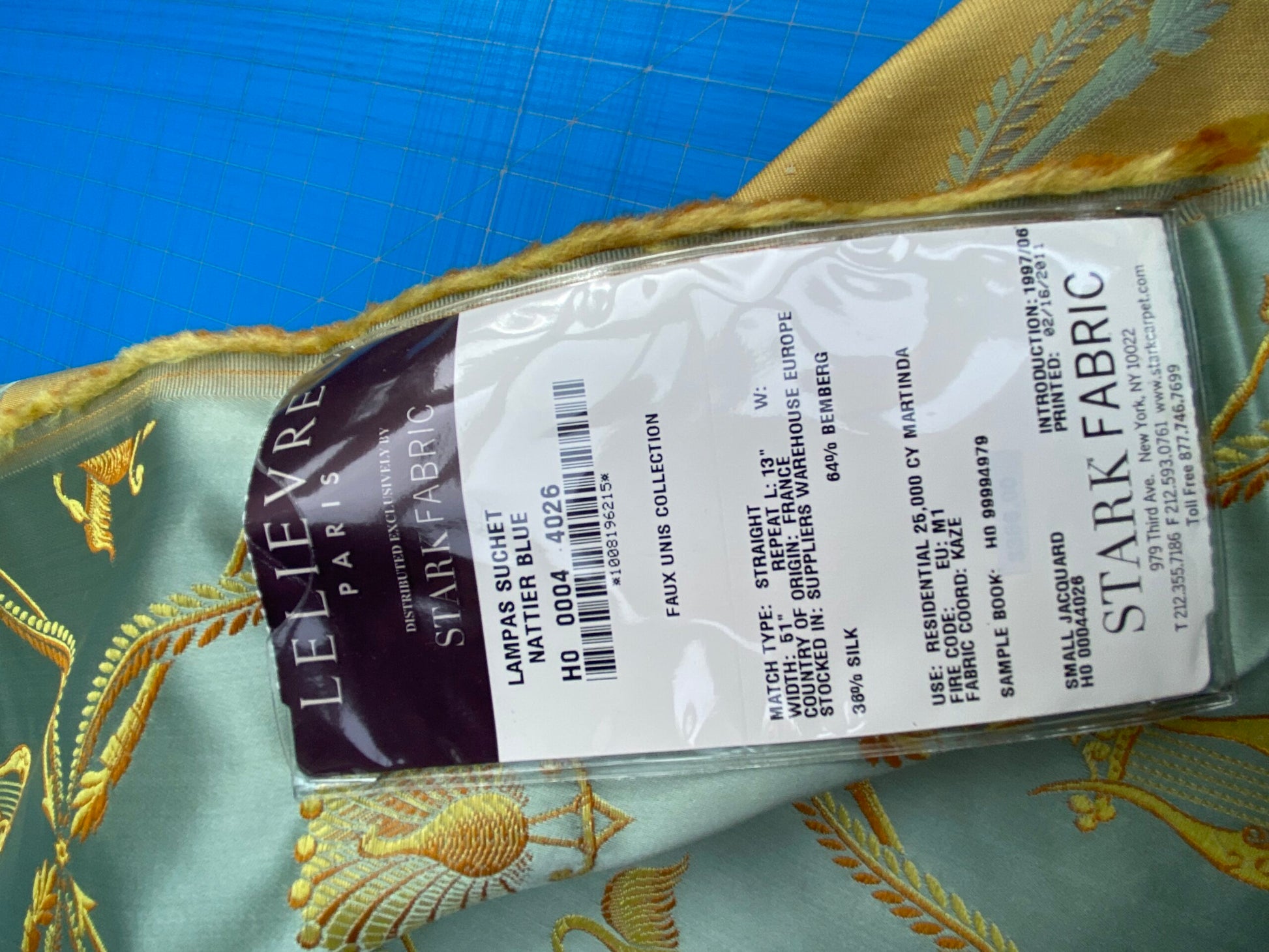 13 Berkbox101 Square Silk by Lelievre Paris Lampas Suchet Nattier Blue Gold Bird Animal Diamond Ogee Historic MSRP USD 1,122/y