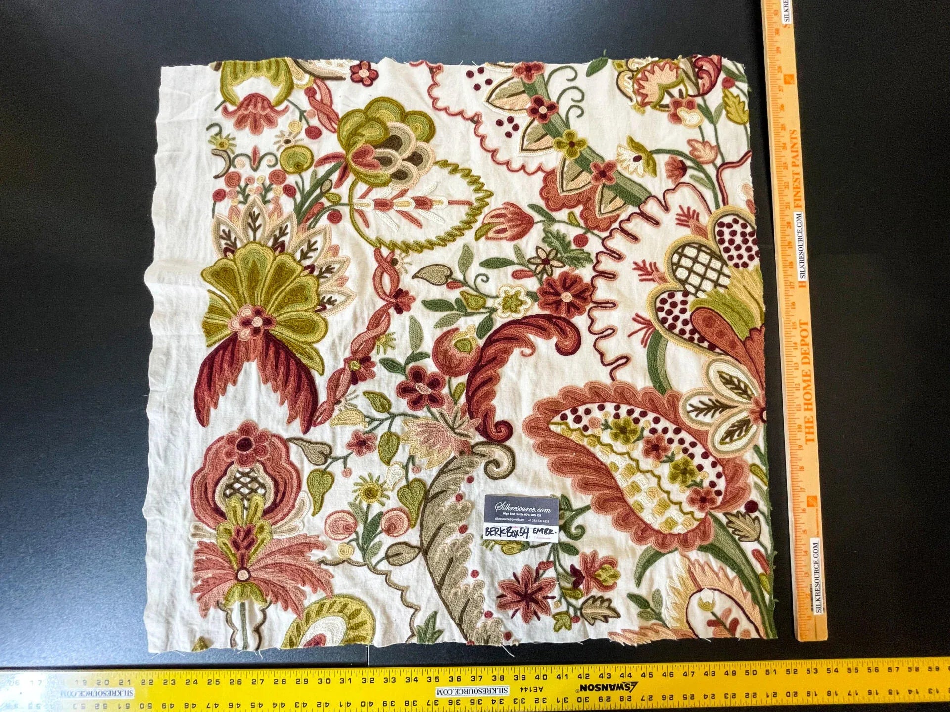 13 Berkbox54 27x27" Scalamandre Square Floral Red and Green Crewel Embroidery Lalita MSRP USD494/Y