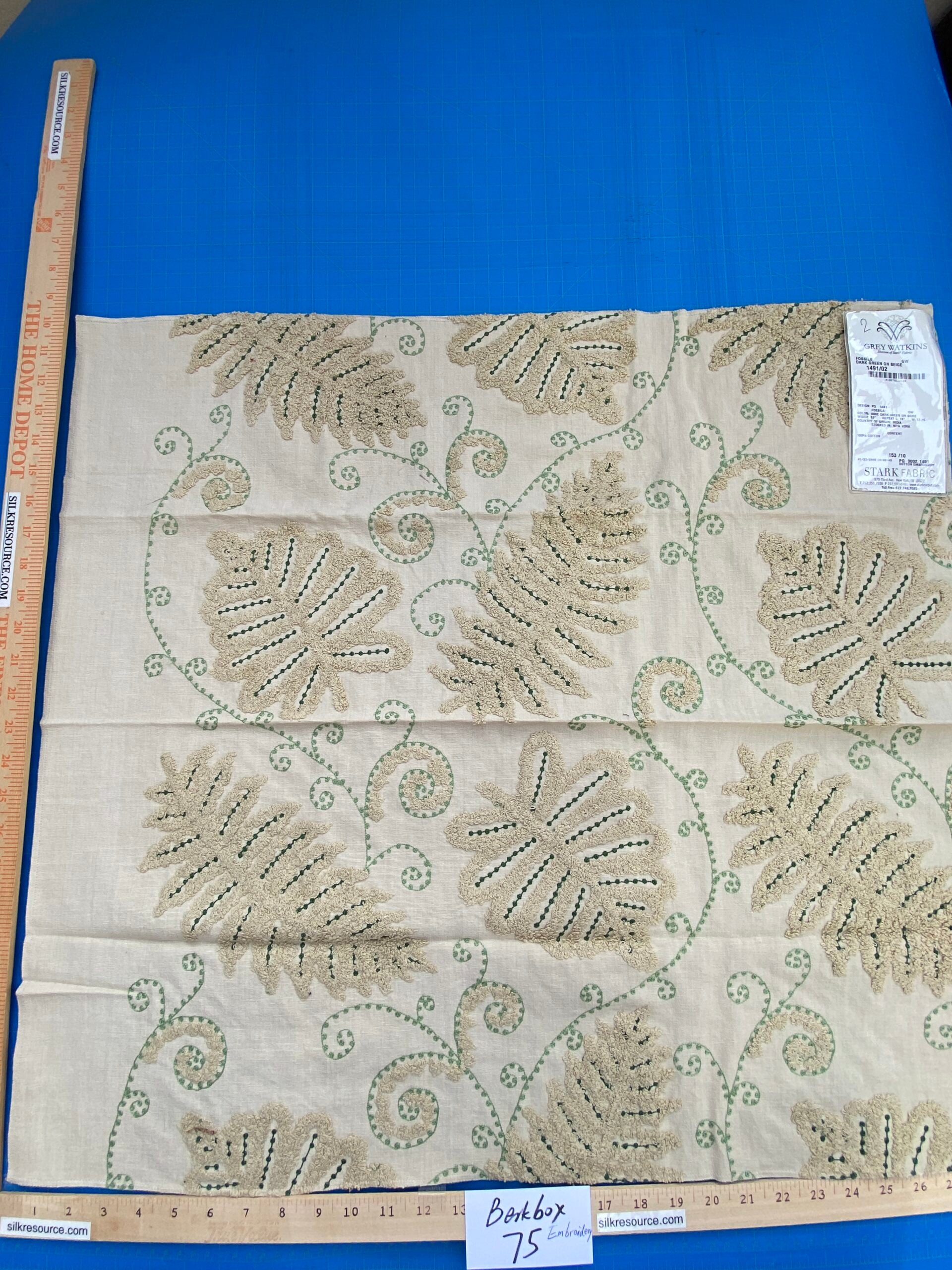 13 Berkbox75 Square Embroidery by Grey Watkins Fossils Dark Green on Beige Cotton Fern MSRP USD 372/Y