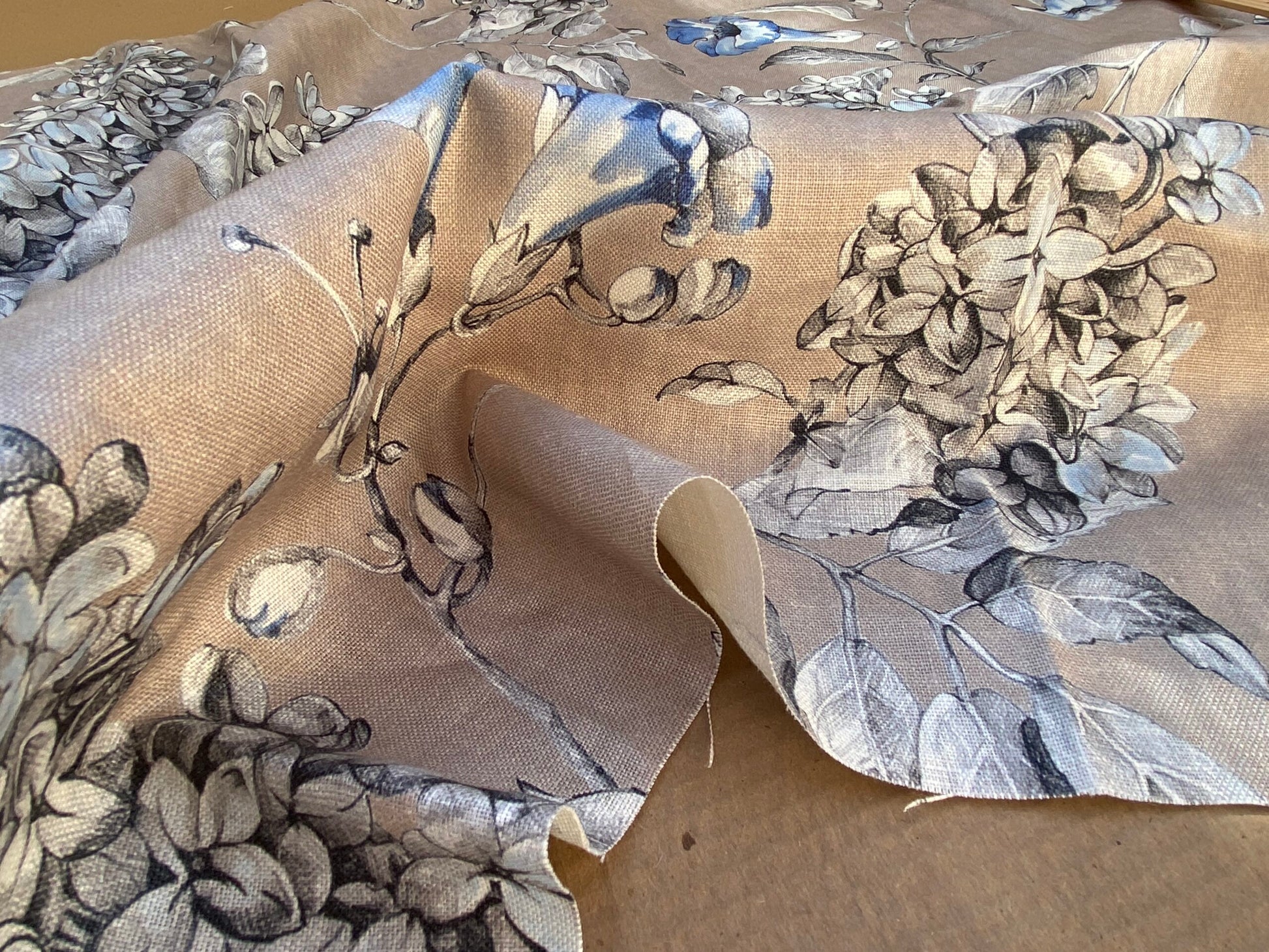 13 Berkbox96 Length Printed Fabrics by Scalamandre Merrimon Linen Gray Floral 100% Linen with Glazed finish MSRP 346/y