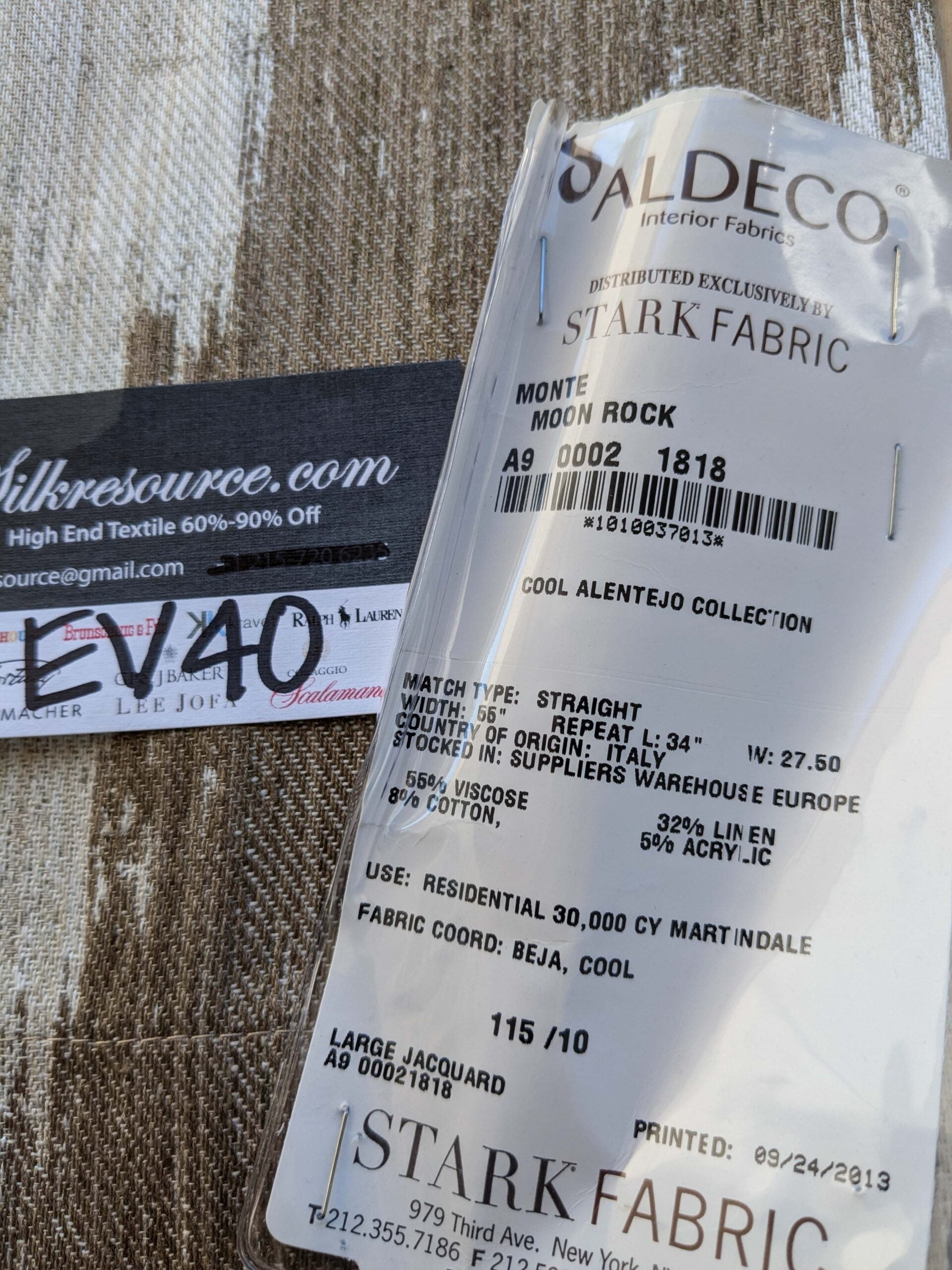 Fiber, repeat, width, weight, country of origin, WHOLESALE price/yard: