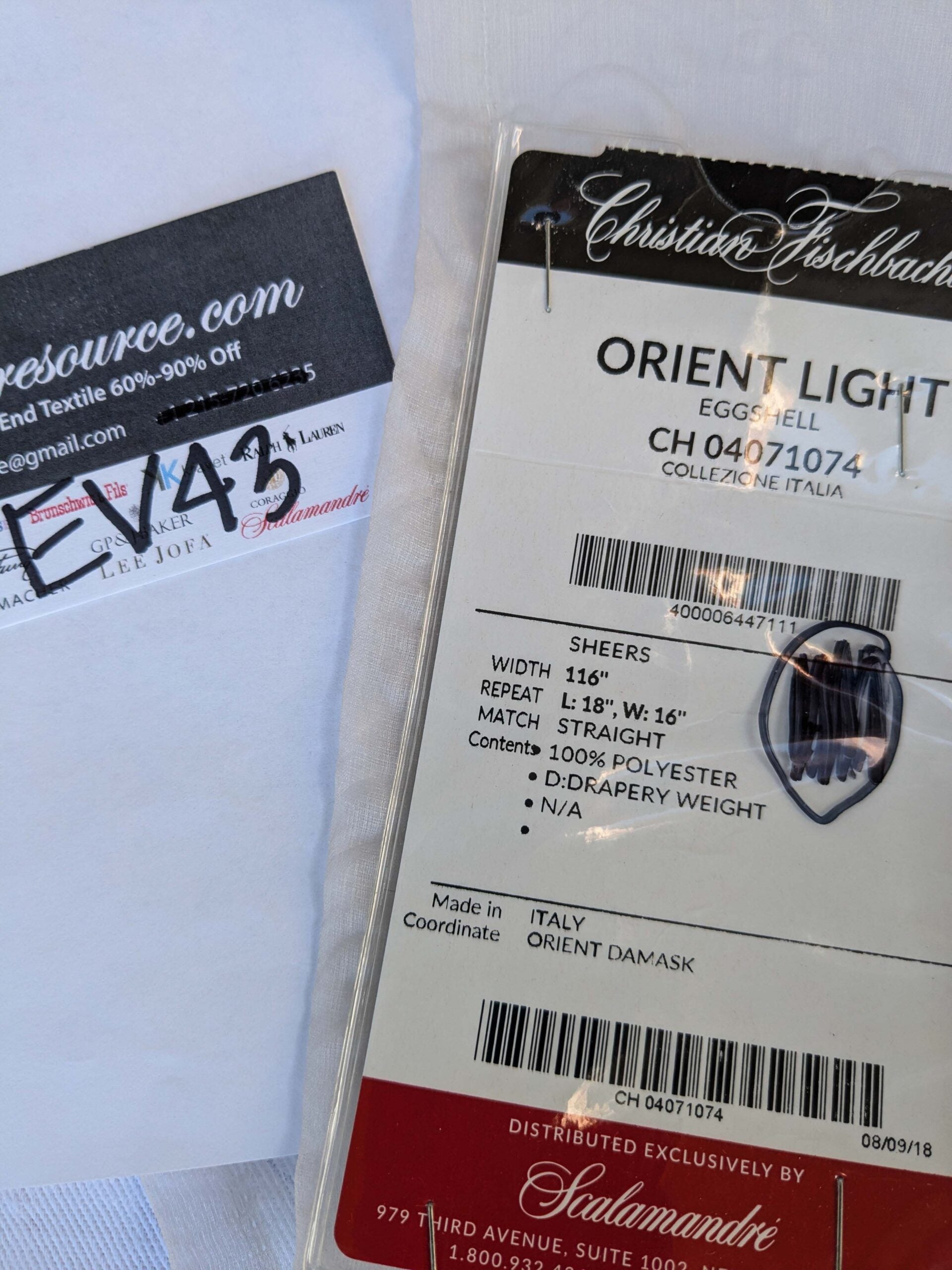 12 EV43 Sheers 2.4y x 56"w Scalamandre Christian Fischbacher Orient Light Eggshell Abstract Jacquard Small Stain