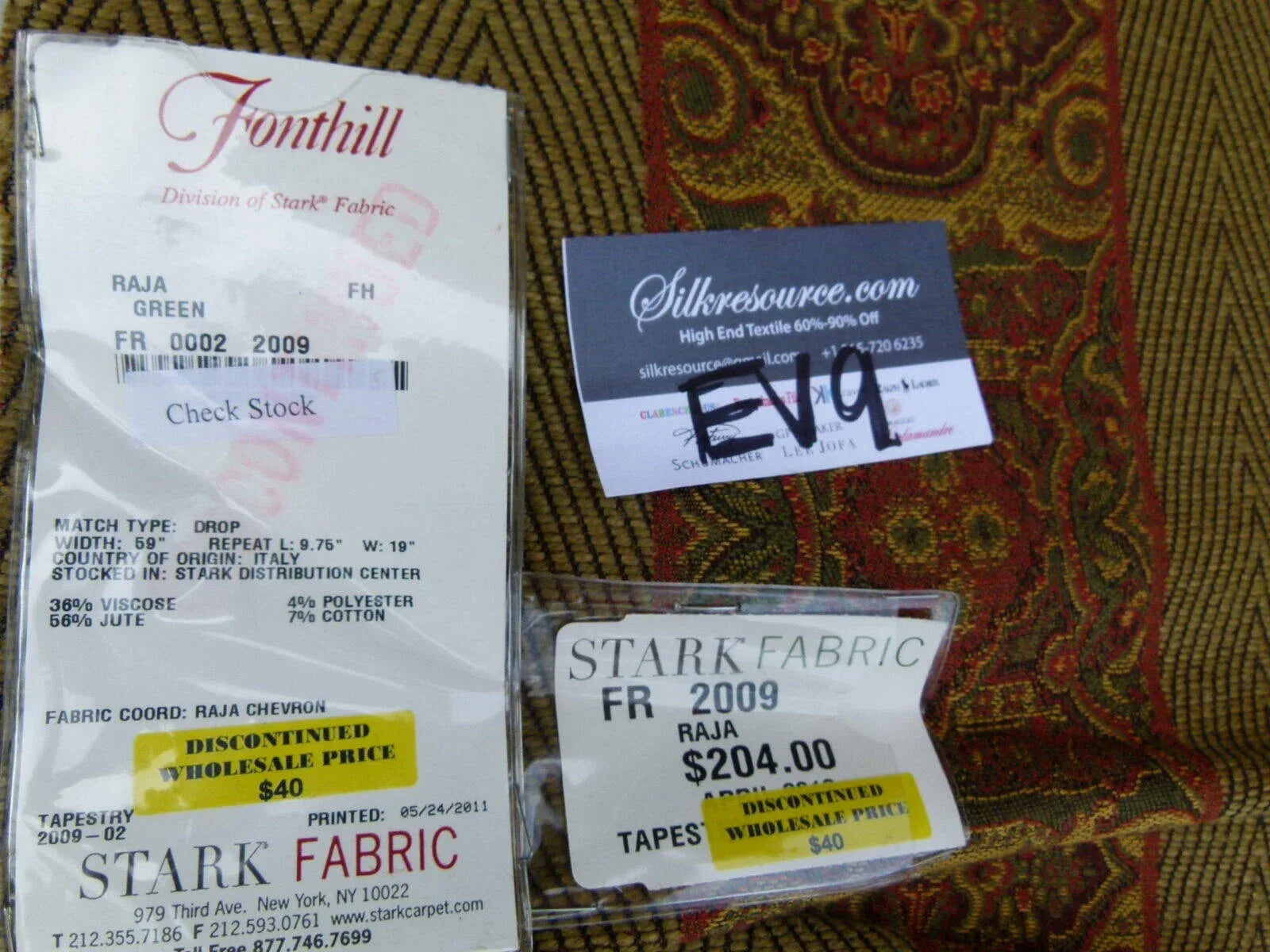13 Ev9 Scalamandre Showroom Sample 33"x26" Raja Stripe Green Tapestry