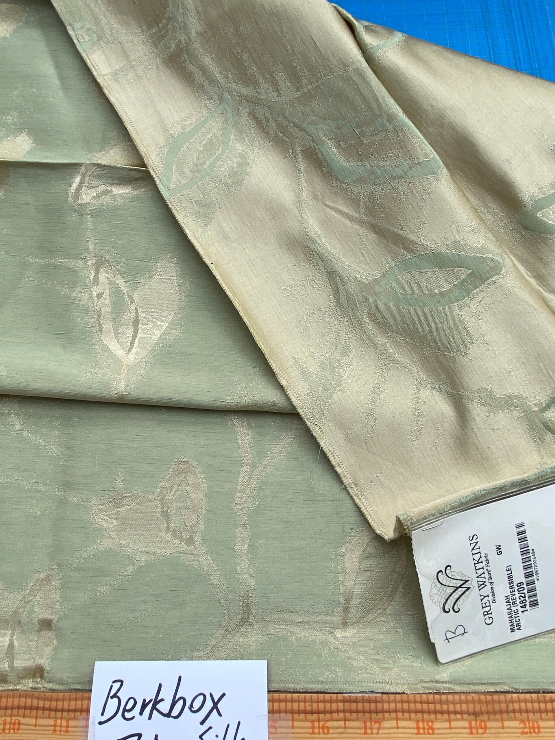14 Berkbox71 Scalamandre Square Silk Grey Watkins Maharajah Arctic Reversible Green Cream Damask Tree Foliage MSRP USD348/y