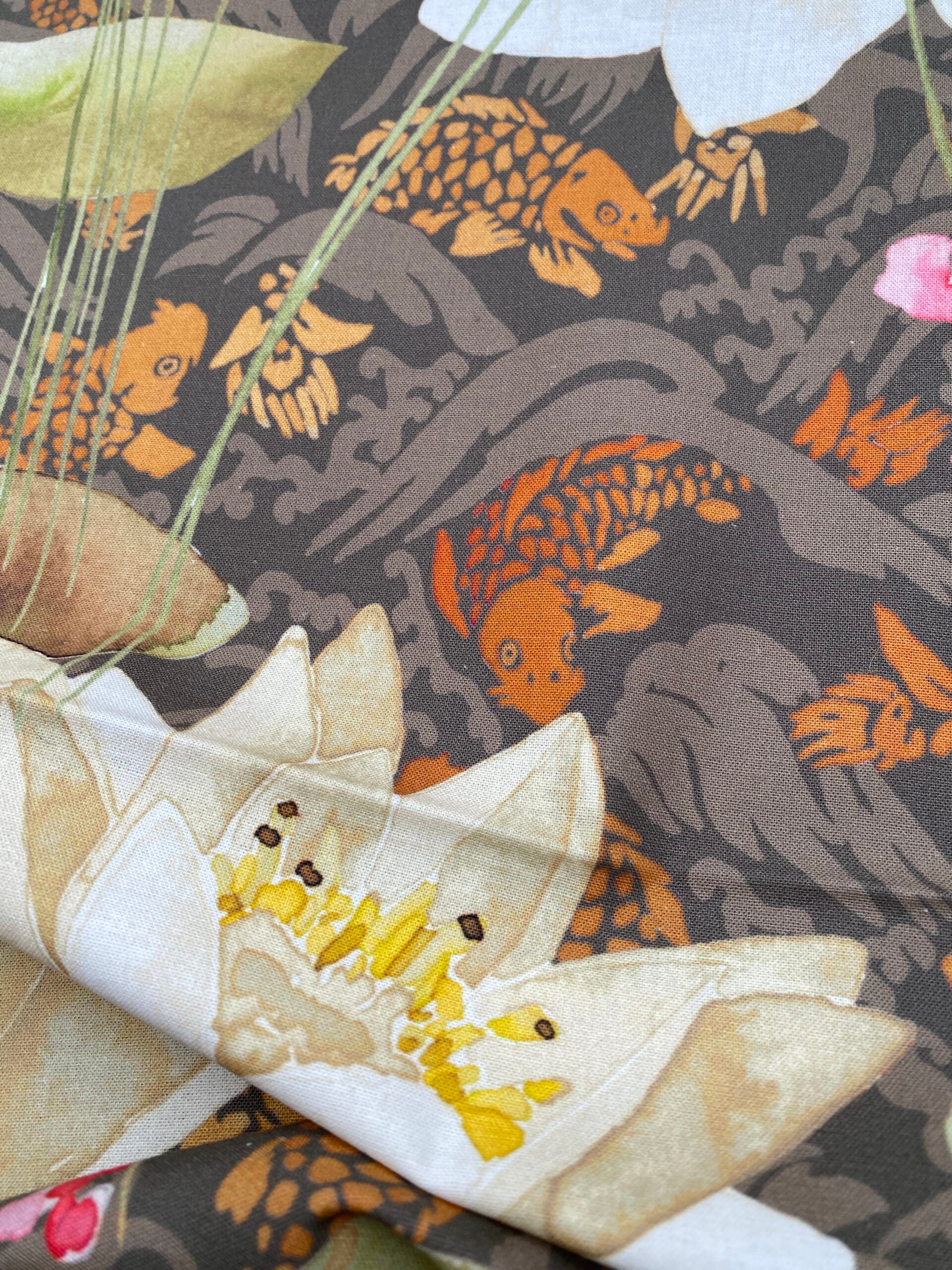 14 Berkbox77 Square Printed Fabrics by Nenuphar Brown/Multi Lotus Pond Koi Fish Cotton 1yd x 26" MSRP USD196/y