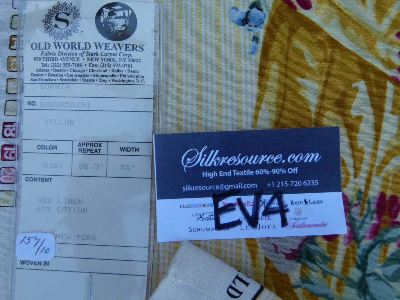 Scalamandre Sophia Yellow Floral Garland Stripe Linen Cotton - 46 Inches x 57"w