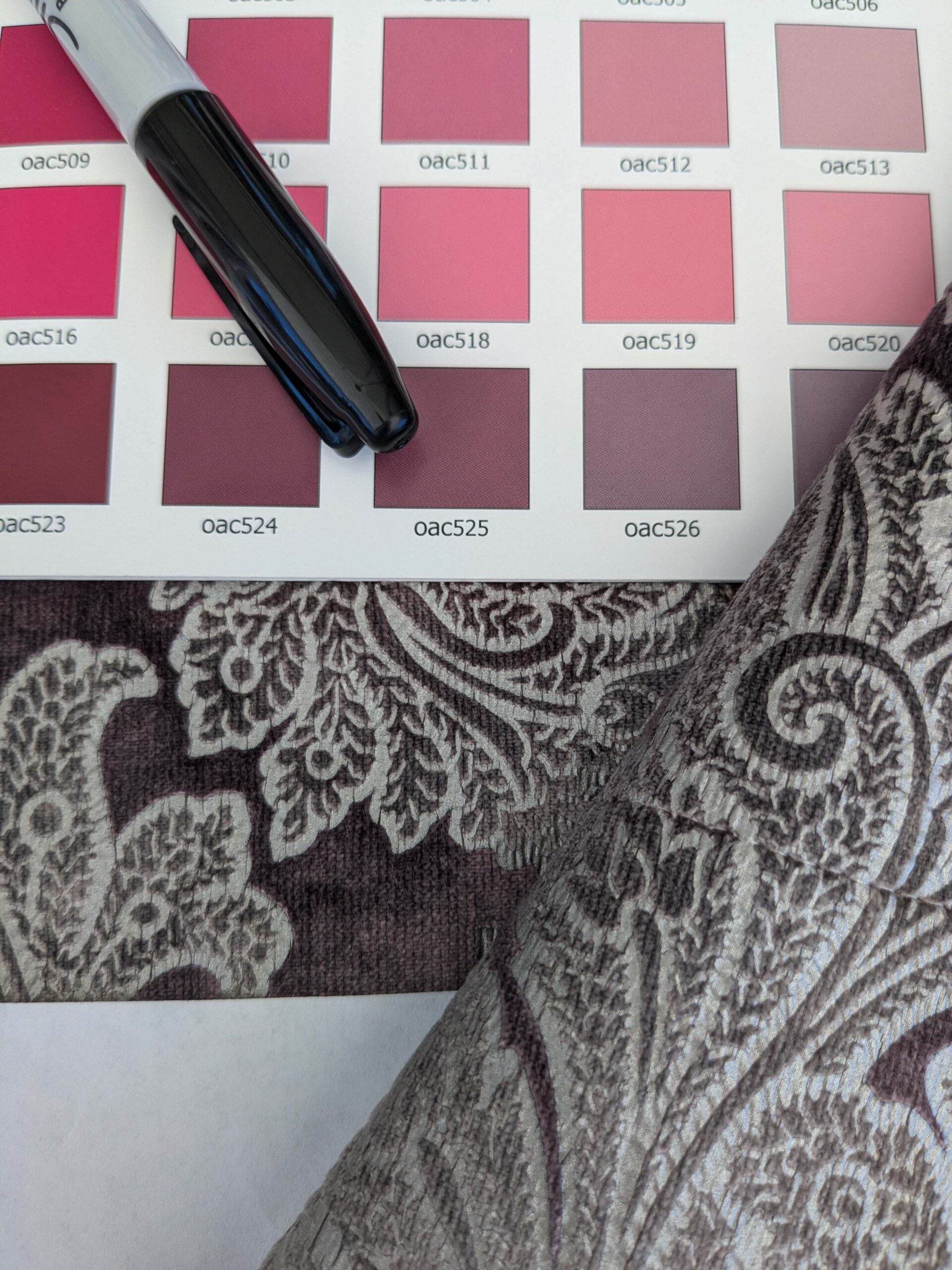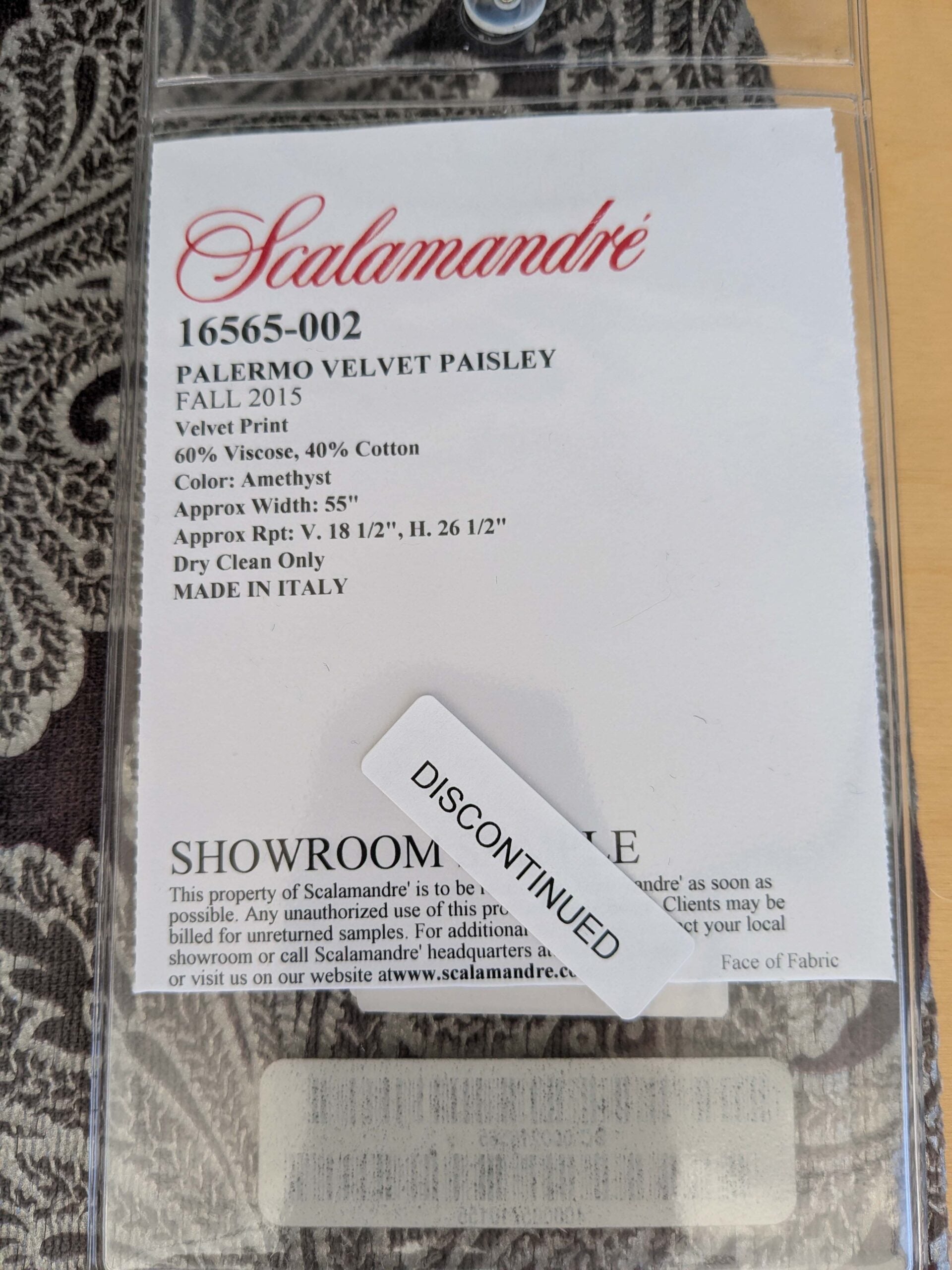 15 EV52 1.2y x 55"wide Scalamandre Palermo Velvet Paisley Amethyst Purple Printed Velvet Botanical Foliage MSRP USD610/y