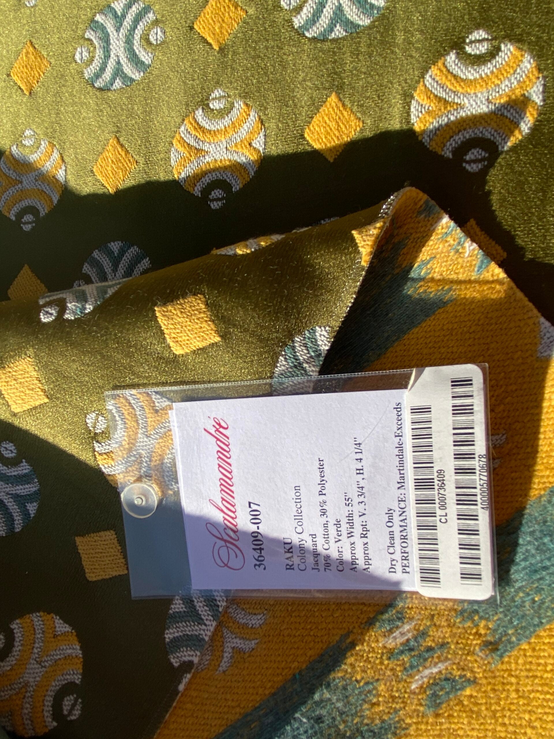 Fiber, repeat, width, weight, country of origin, WHOLESALE price/yard: