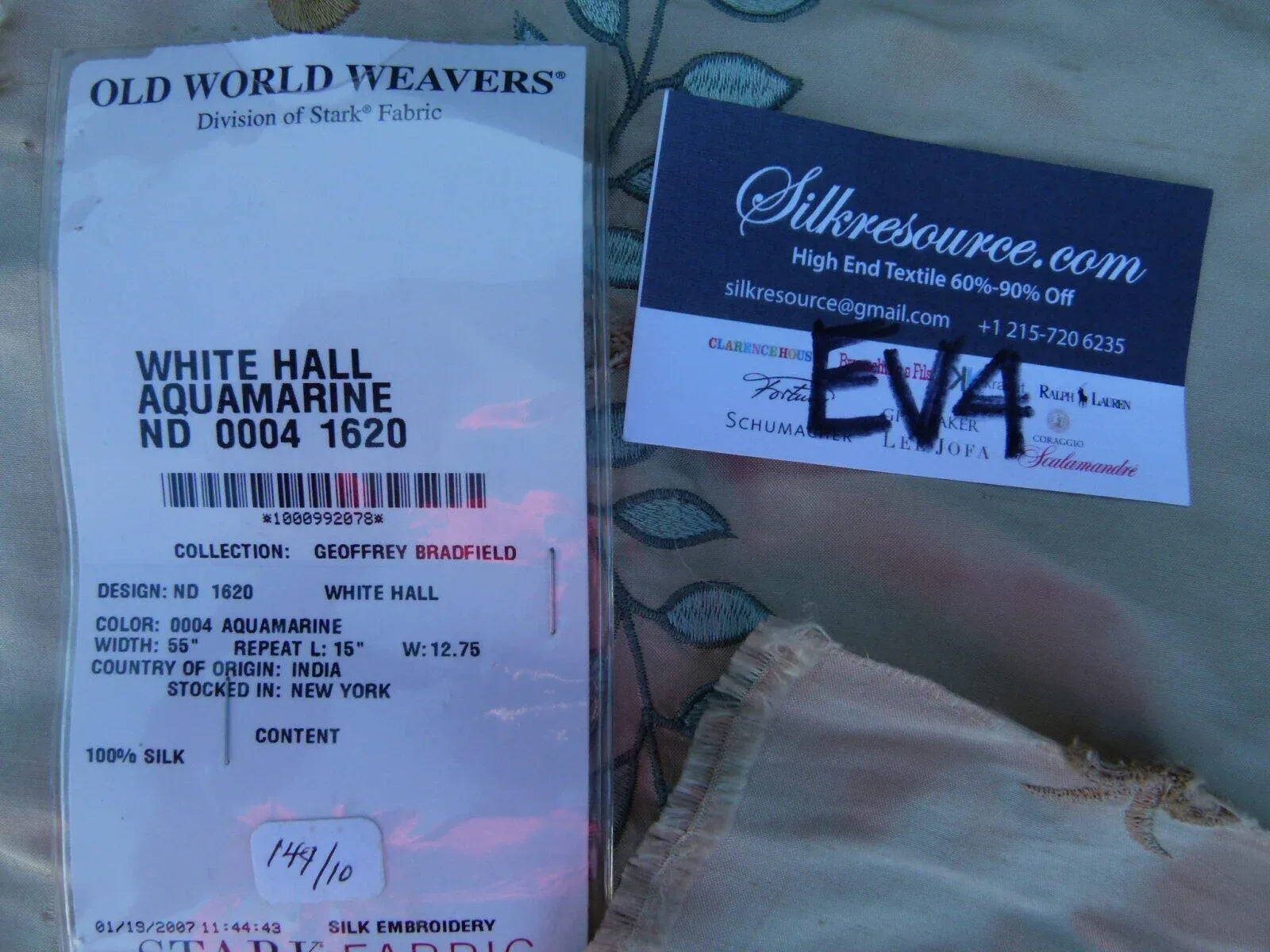 15 Ev4 Scalamandre 42" White Hall Aquamarine Blue Beige Silk Foliage