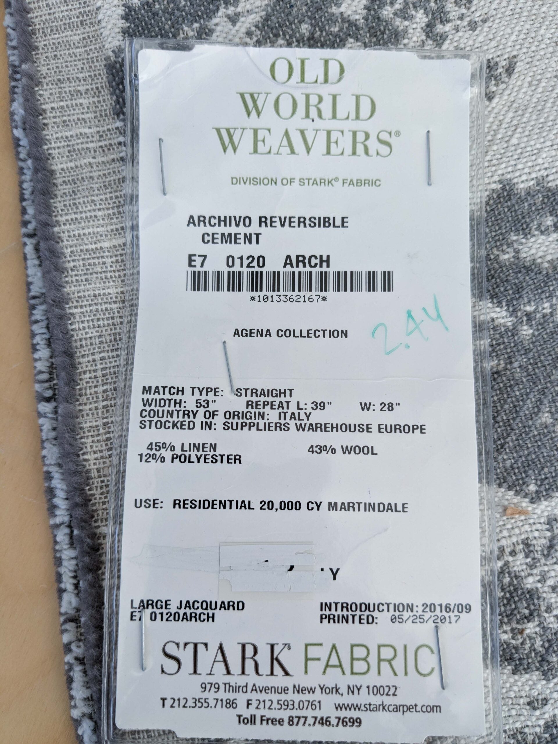 2.4y x 53"w Scalamandre Archivo Reversible Cement Grey White Linen Wool Large Jacquard MSRP USD556/y 15-Ev49
