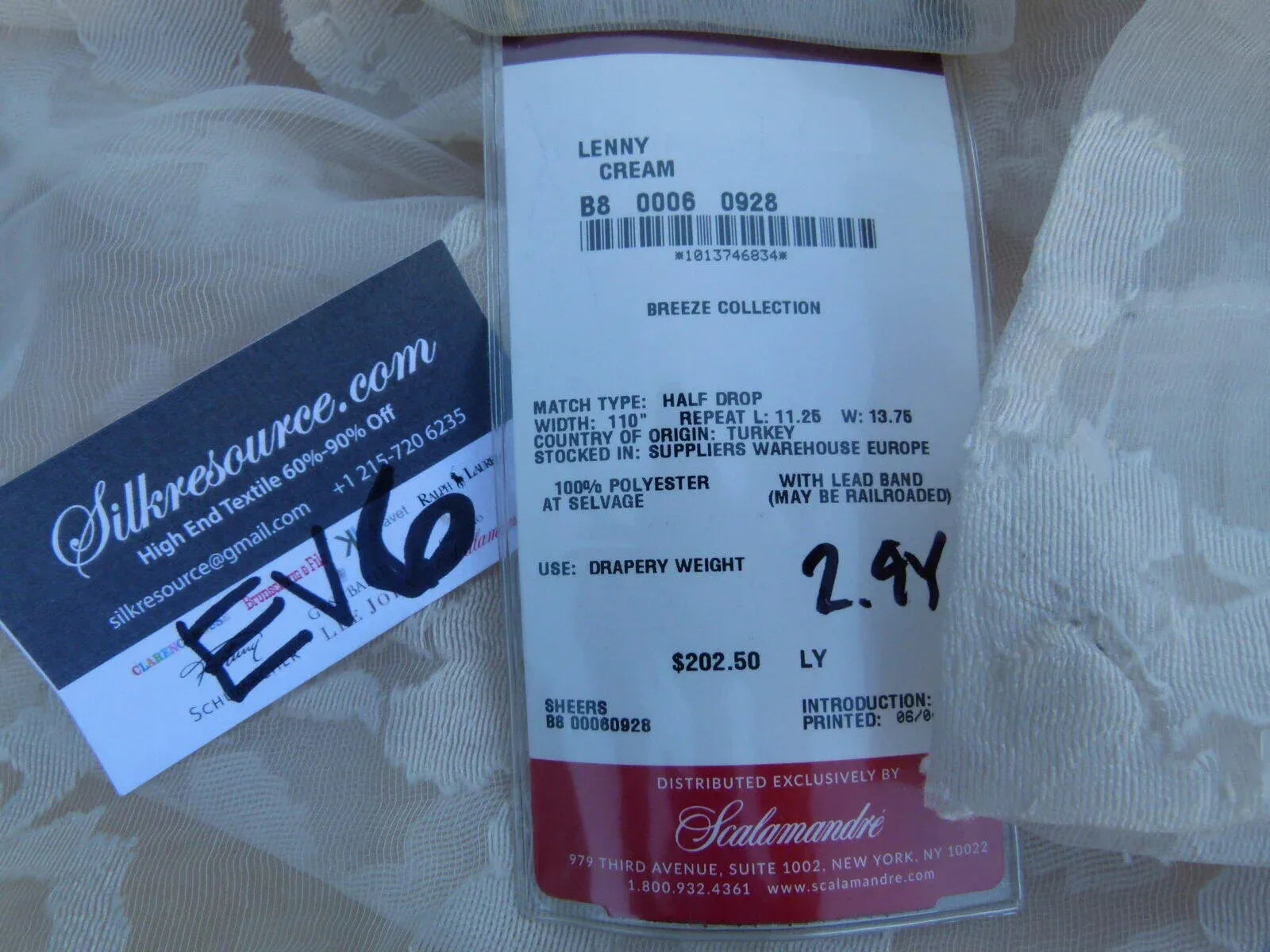 15 Ev6 51"x 2.4Y Scalamandre Showroom Length Lenny Cream Sheer Trellis MSRP USD 404/Y