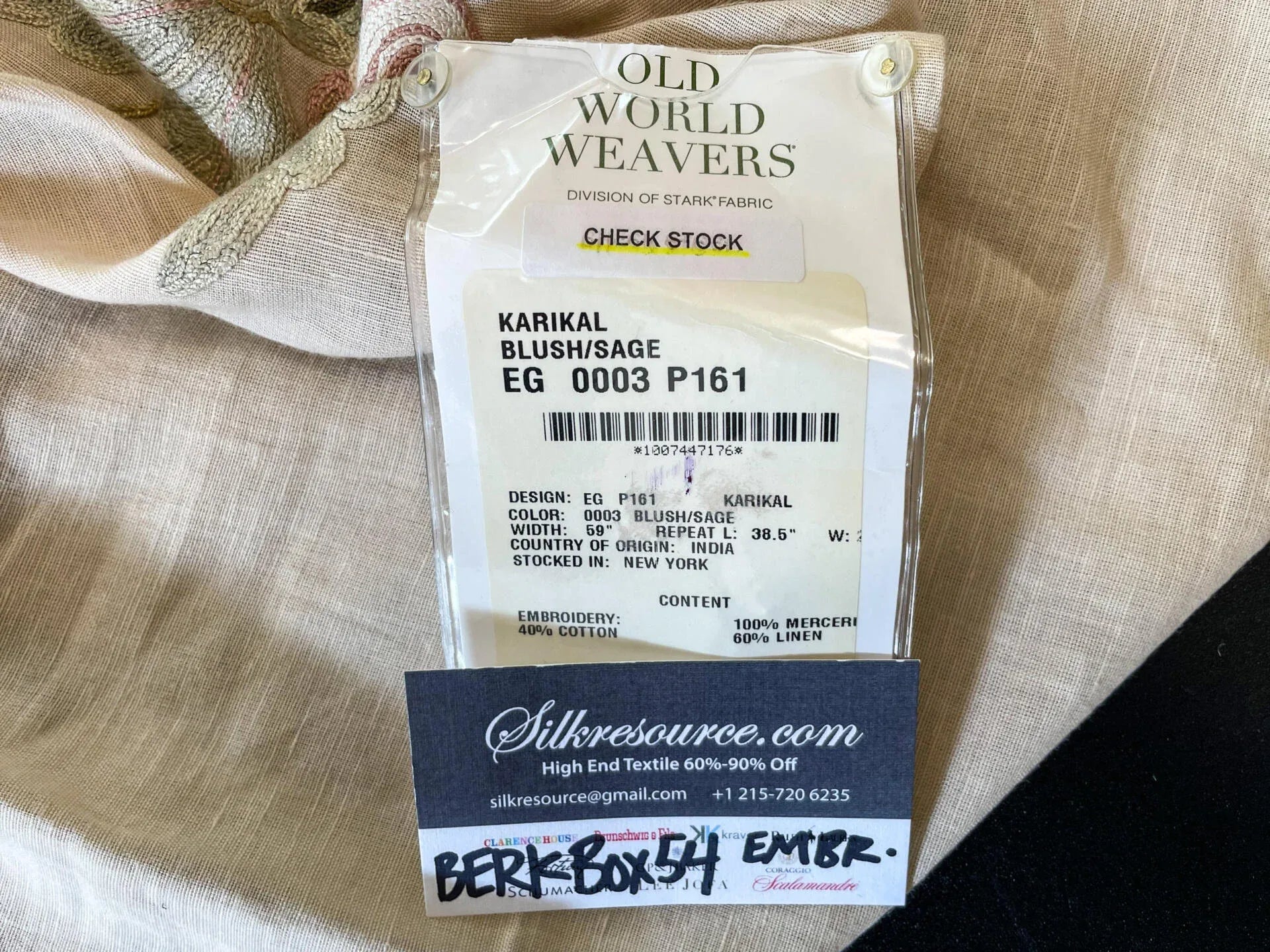 16 Berkbox54 2.4 yard x59" wide Scalamandre Karikal Blush/Sage Cotton Linen Crewel Embroidery Flora Crewel