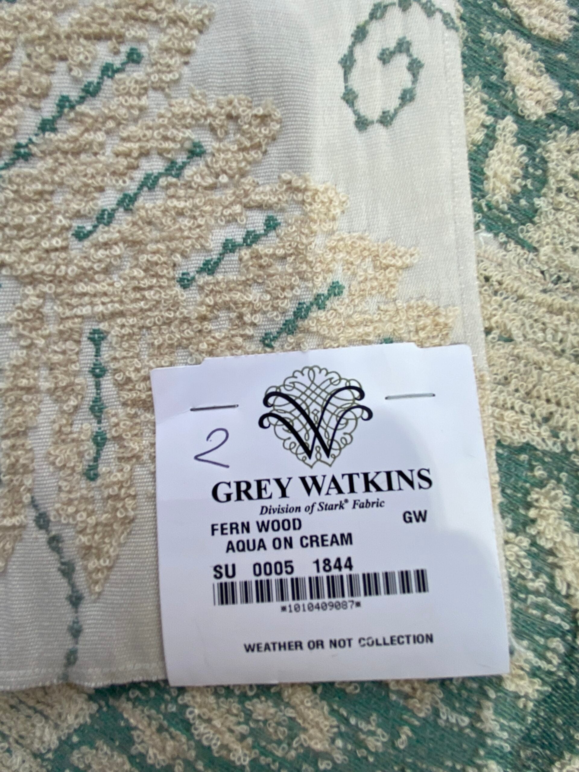 16 Berkbox75 Square Embroidery by Grey Watkins Fern Wood Aqua on Cream Foliage Outdoor MSRP USD 372/Y