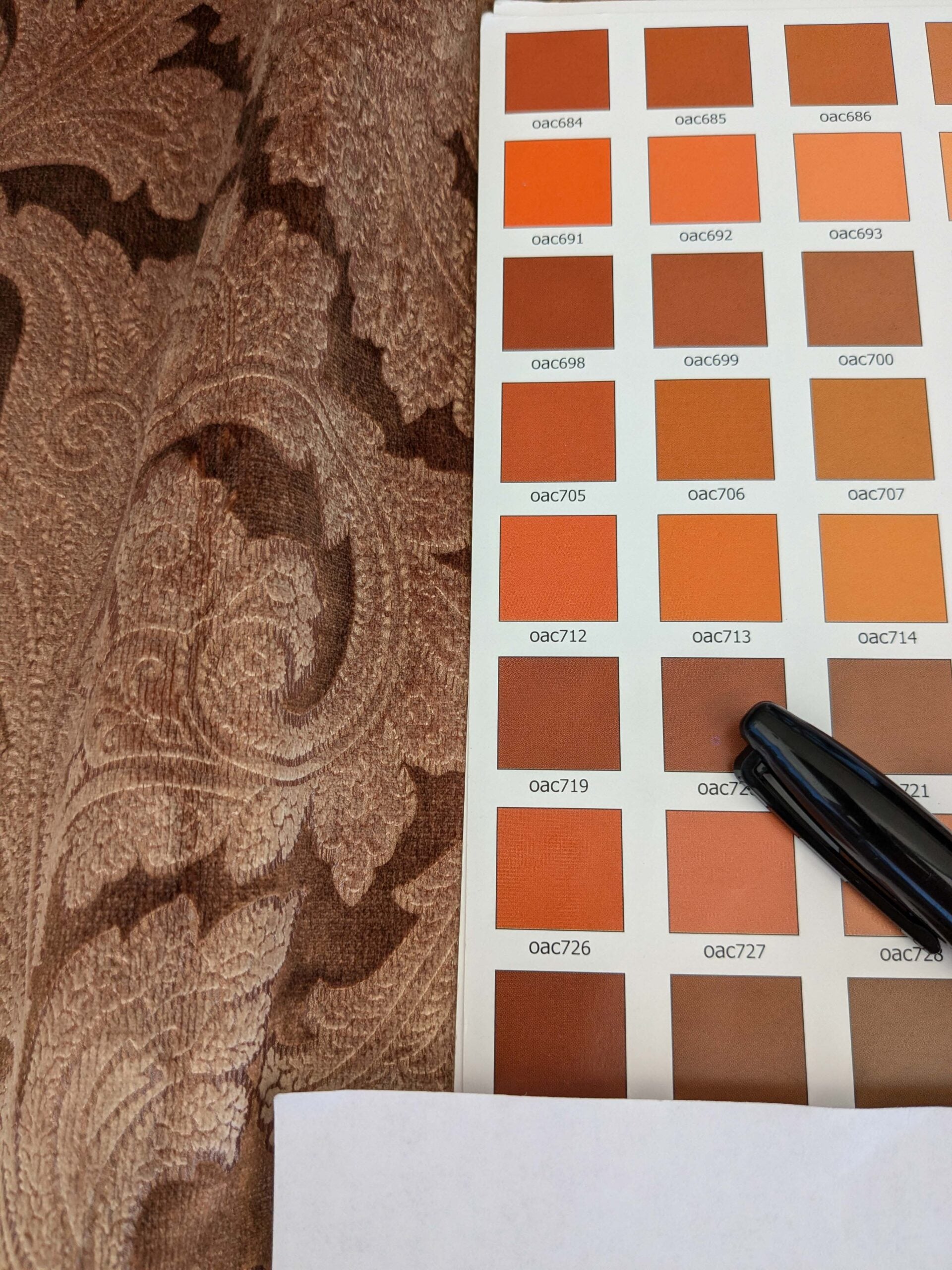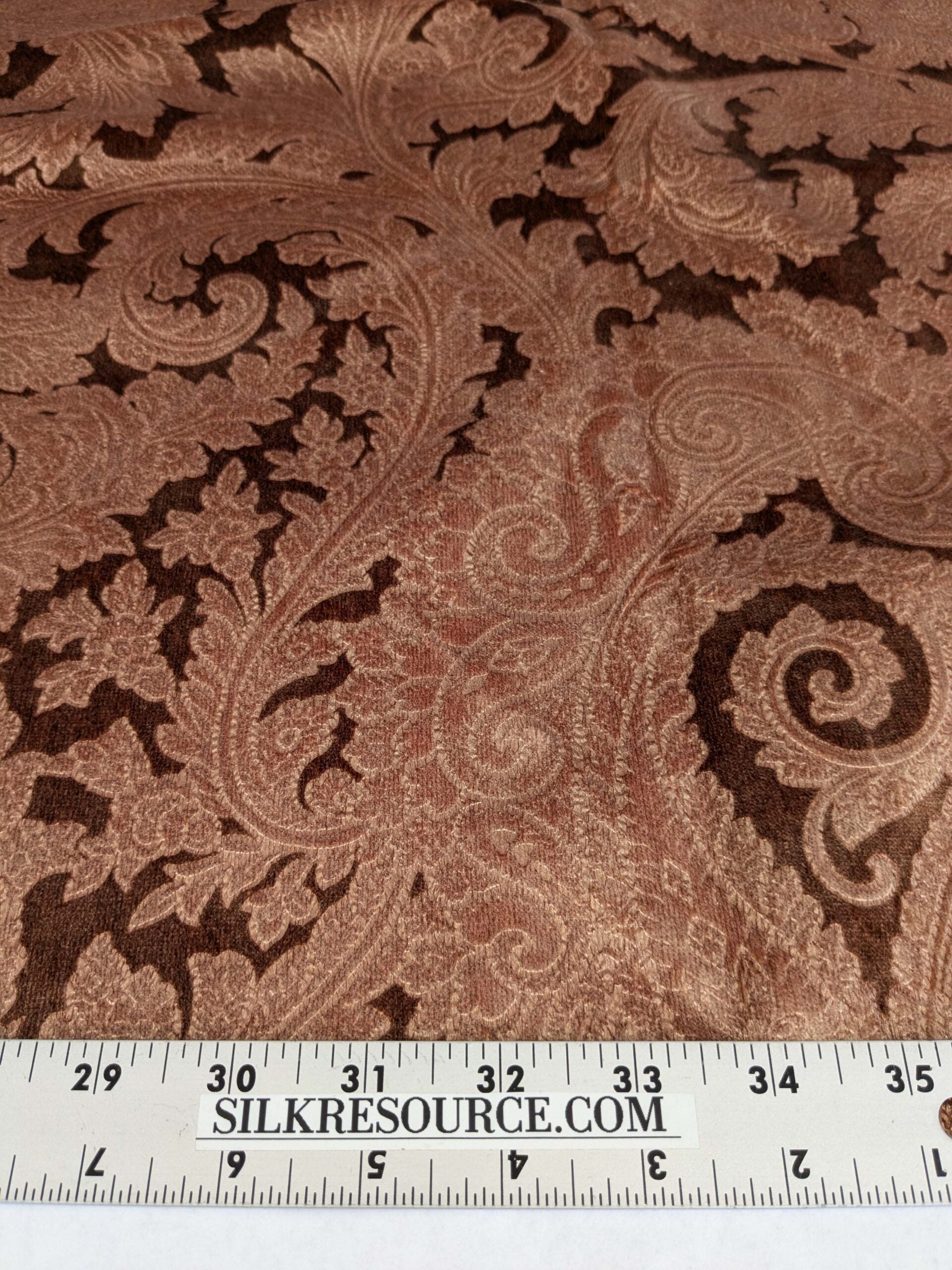 16 EV52 1.2y x 55"wide Scalamandre Palermo Velvet Paisley Copper Brown Printed Velvet Botanical Foliage MSRP USD610/y