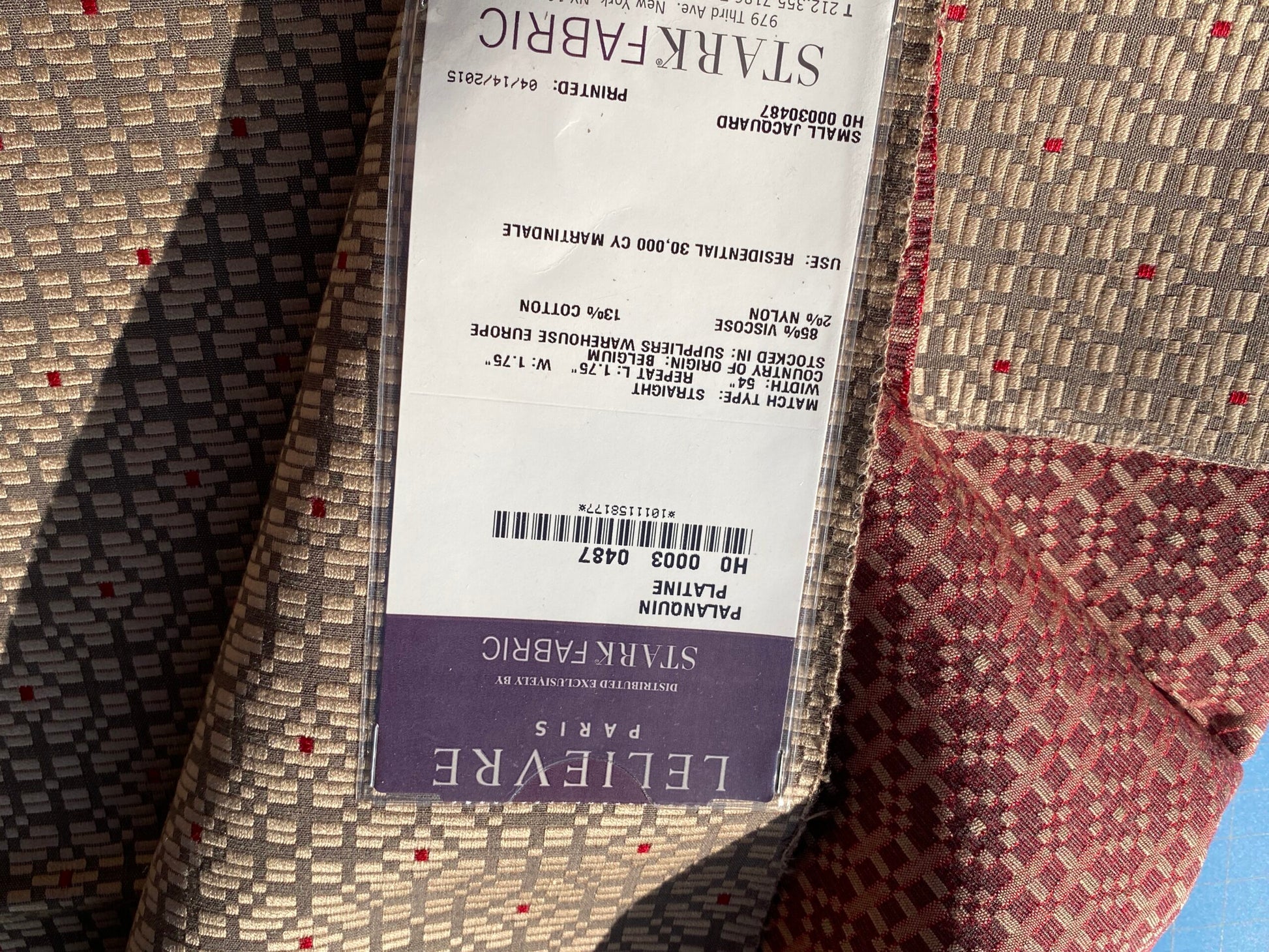 Fiber, repeat, width, weight, country of origin, WHOLESALE price/yard: