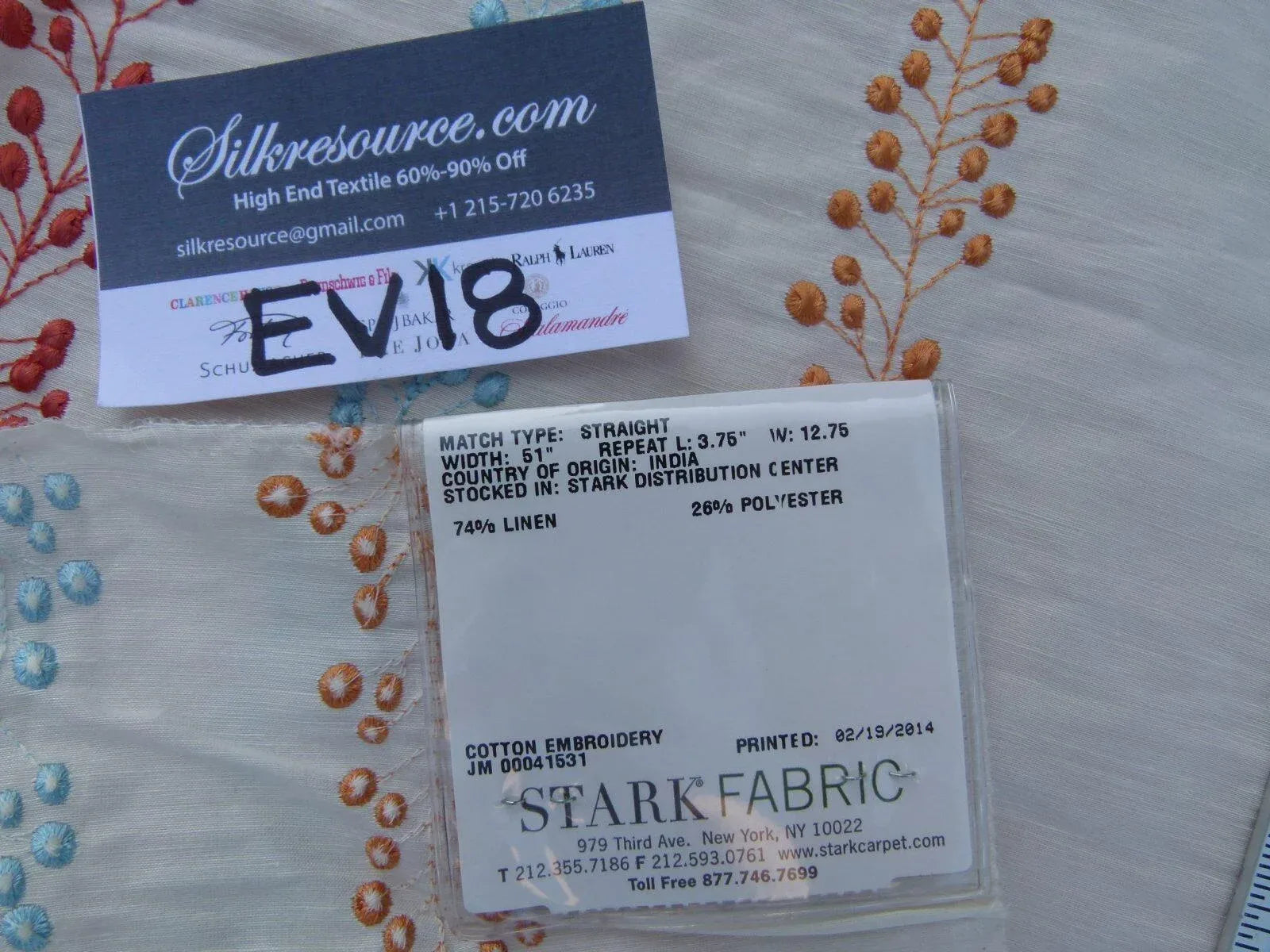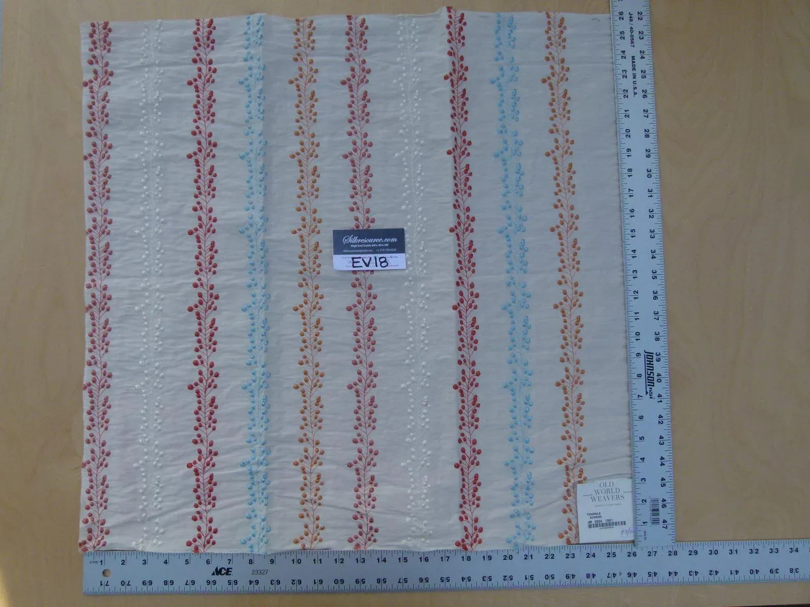 17 Ev18 Scalamandre 26"x26" Tendrils Sunrise Ivory Red Blue Linen Embroidered Leaf Dot Stripe (copy)