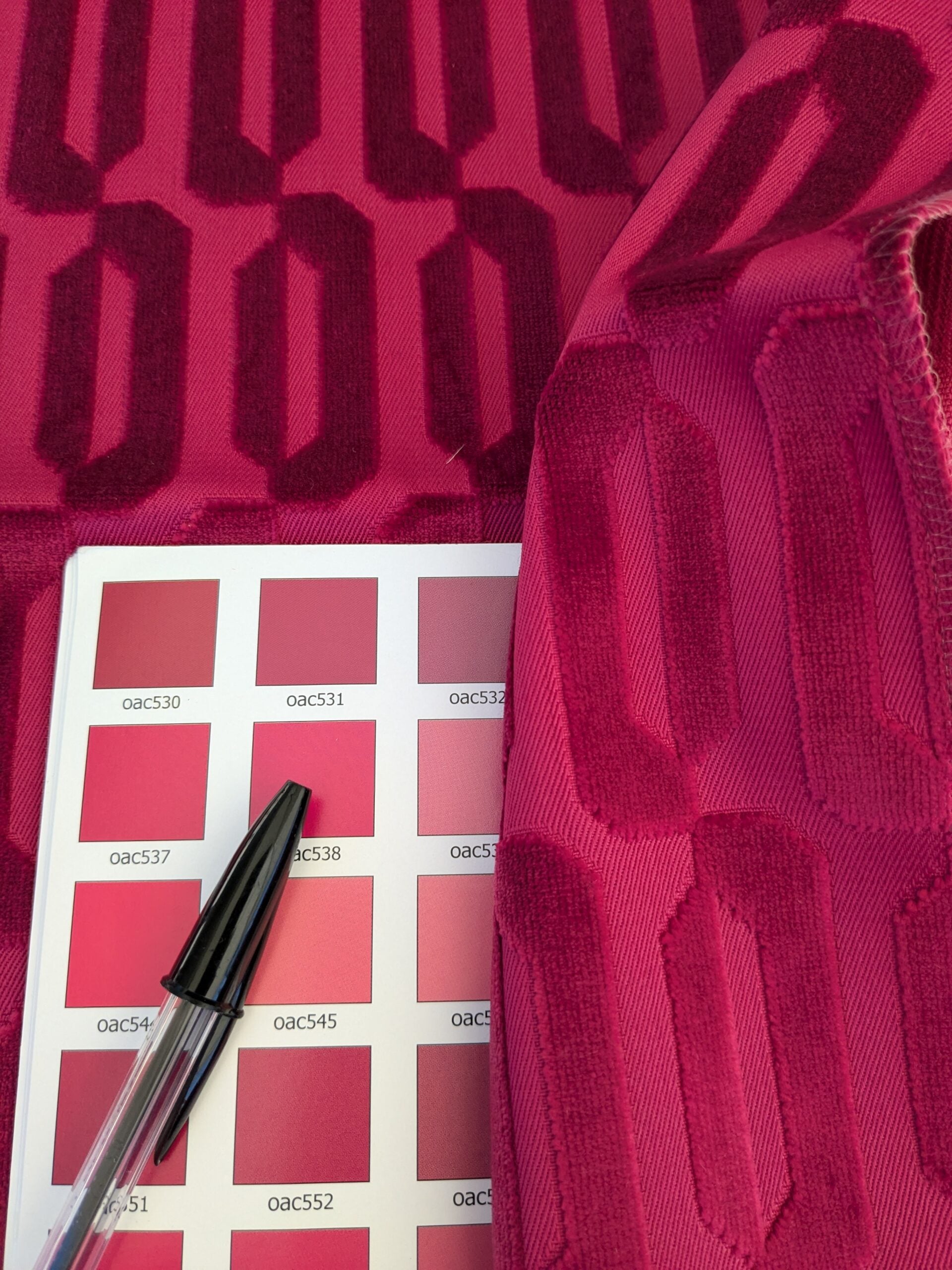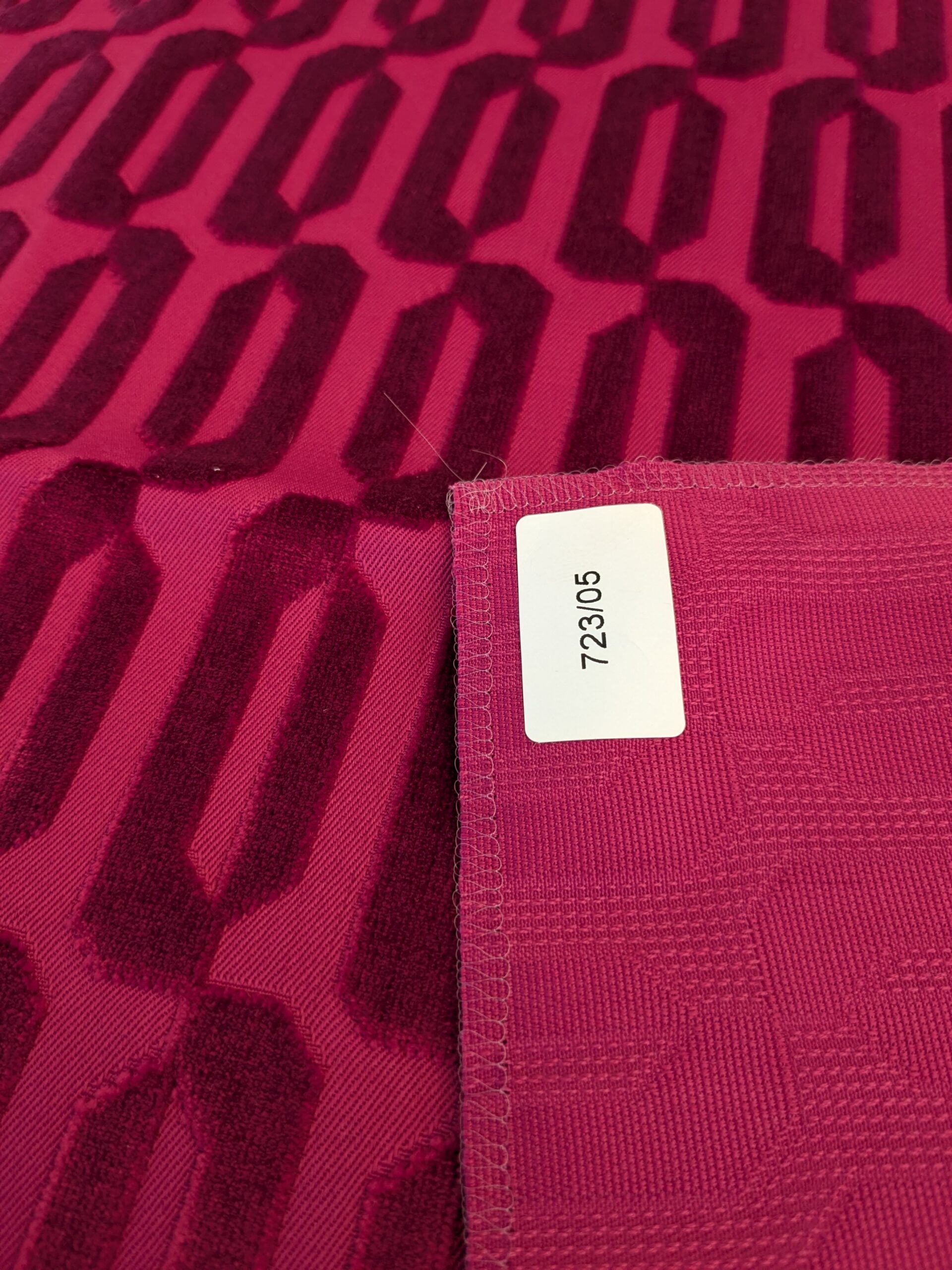 17 EV46 Velvet Square Scalamandre Lelievre Paris Typo M1 Red Polyester Geometric Graphic MSRP USD 474/y