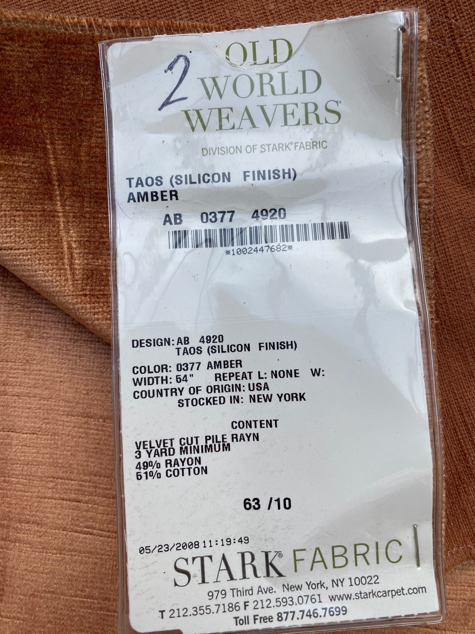 18 Berkbox83 Square Velvet by Old World Weavers Taos Silicon Finis Amber Copper Brown Solid Texture MSRP USD210/y