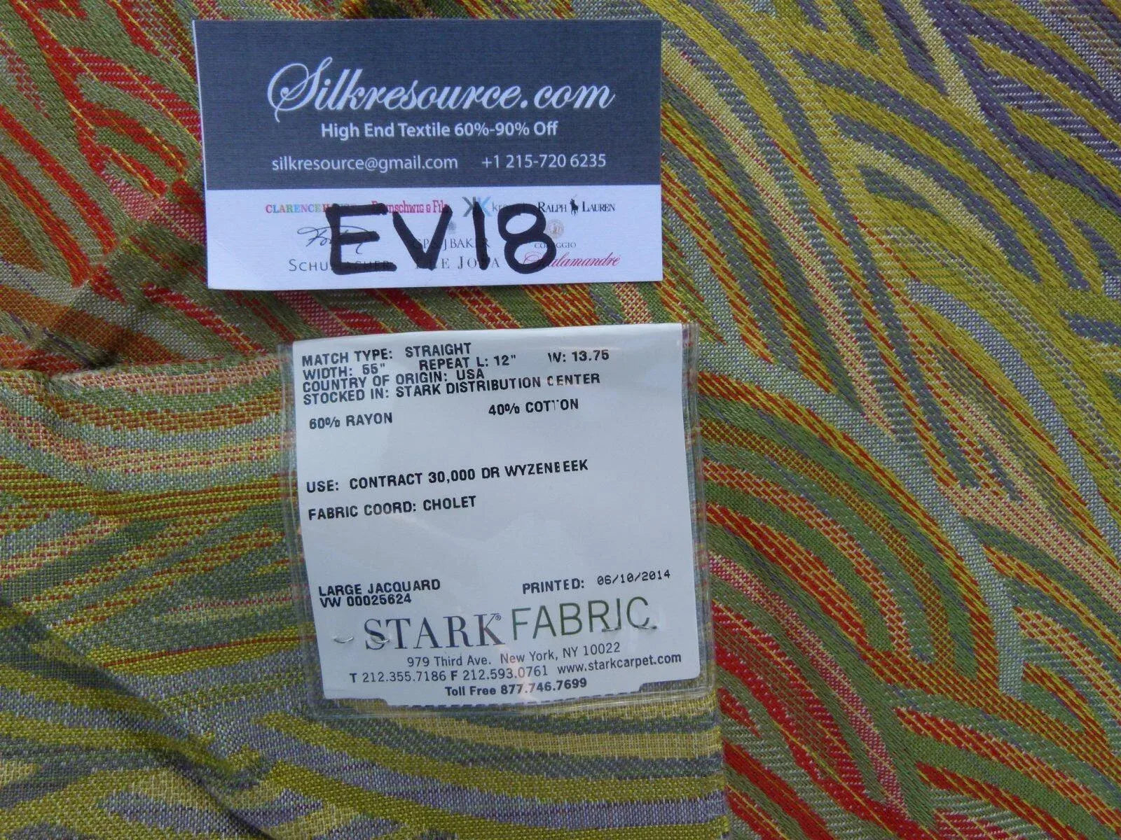 Fiber, repeat, width, weight, country of origin, WHOLESALE price/yard: