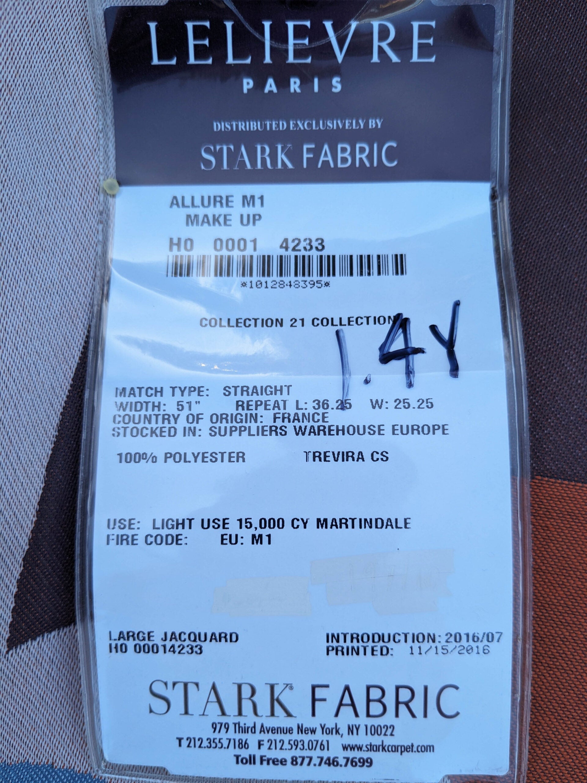Fiber, repeat, width, weight, country of origin, WHOLESALE price/yard: