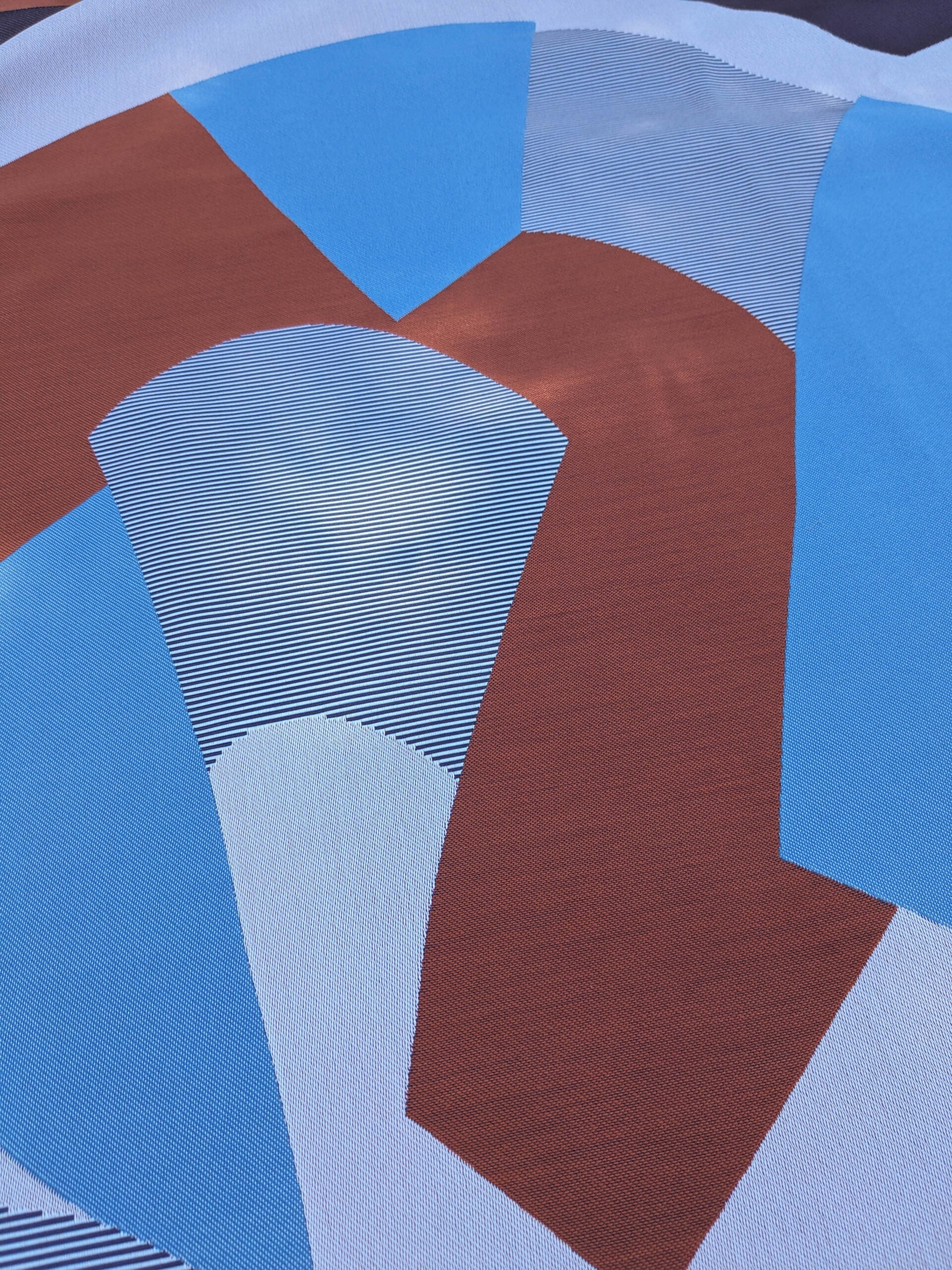 18 EV35 Length 1.4y Lelievre Paris Allure M1 Make Up Orange Blue White Gray Large Jacquard Abstract Graphic MSRP USD574/y