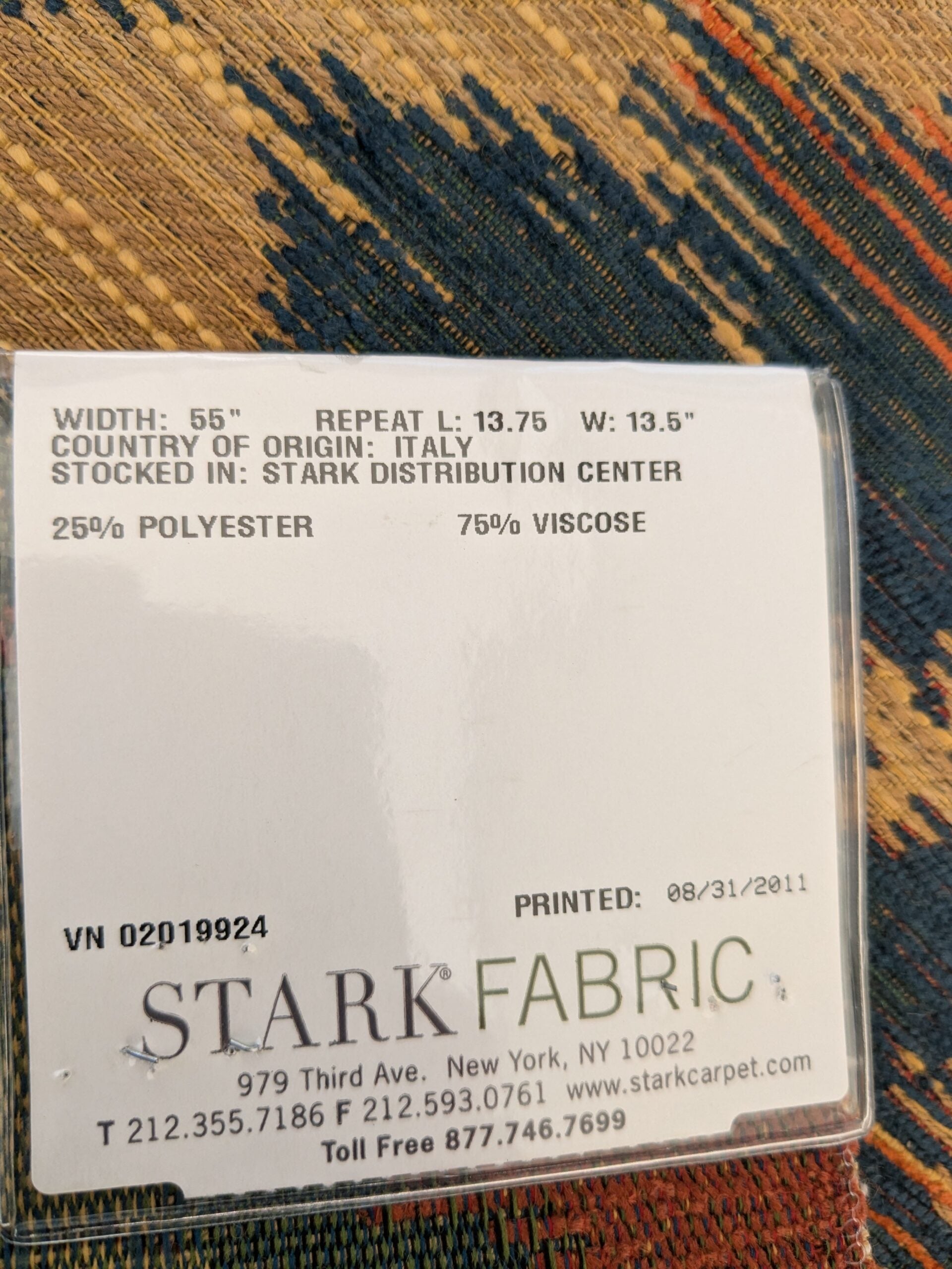 Fiber, repeat, width, weight, country of origin, WHOLESALE price/yard: