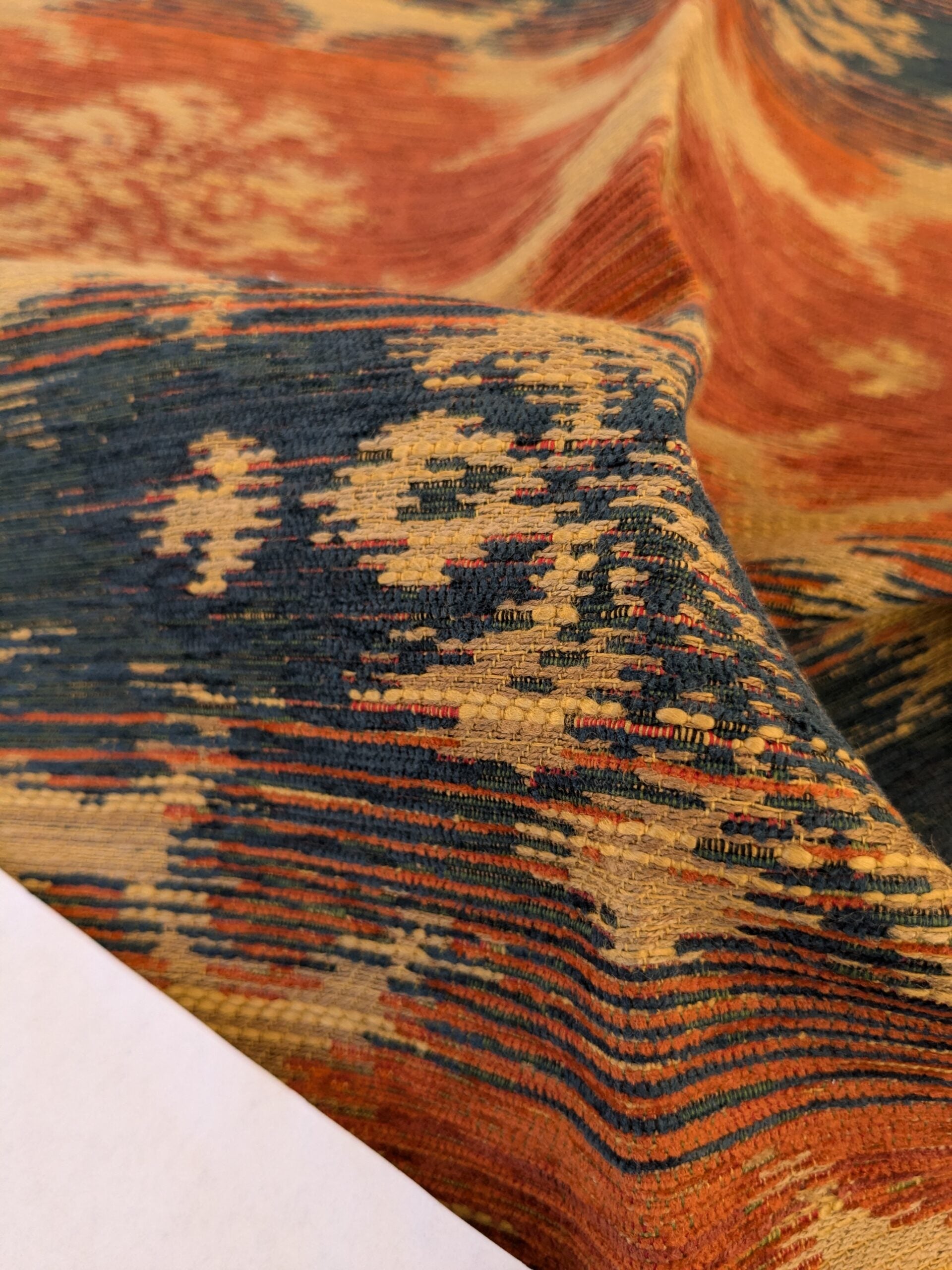 18 EV47 Square Scalamandre Accademy Ikat Persian Heavy Orange Red Blue Purple Earthy MSRP USD 148/Y 27"x27"