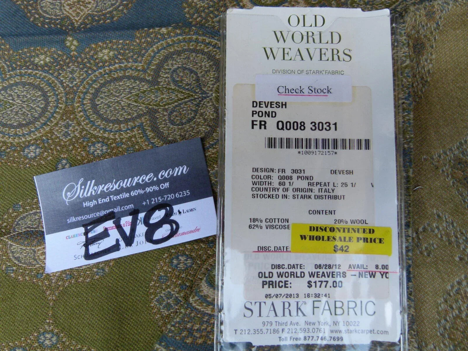 18 Ev8 Scalamandre Showroom Sample Square Devesh Pond Green Blue Paisley Woven MSRP USD 192/Y