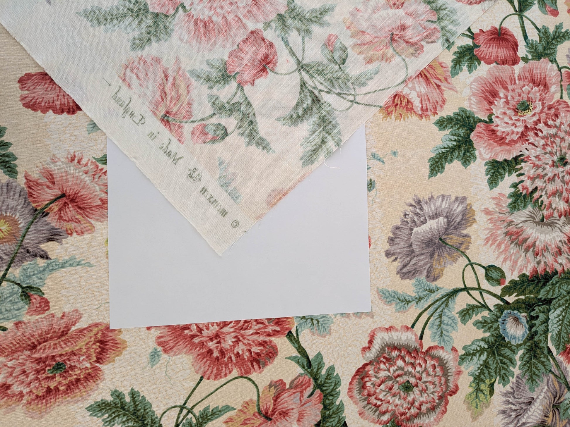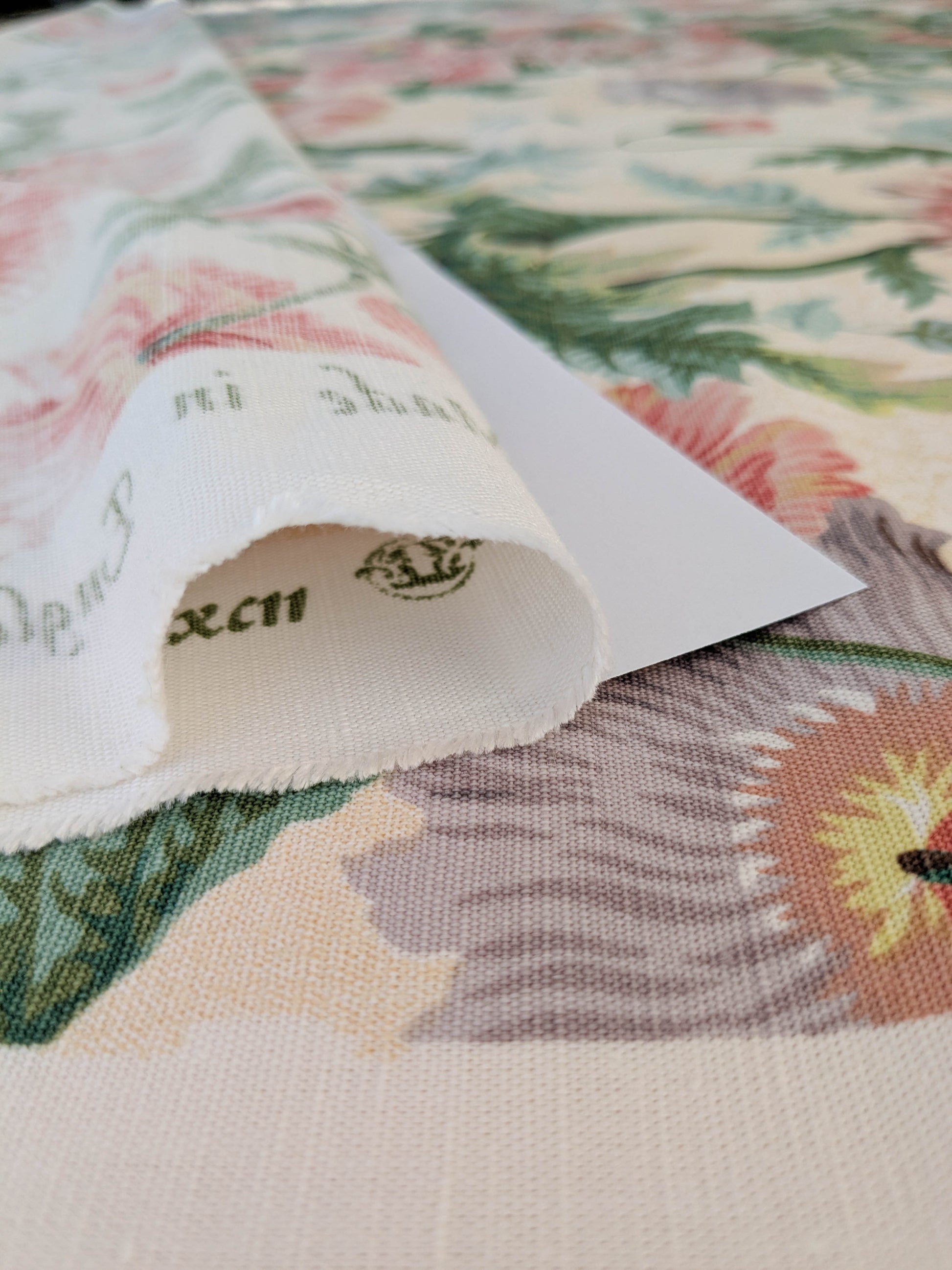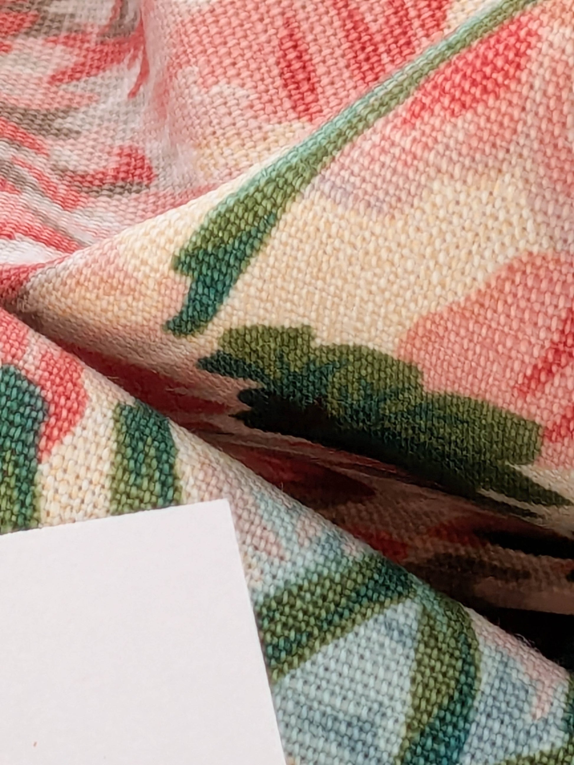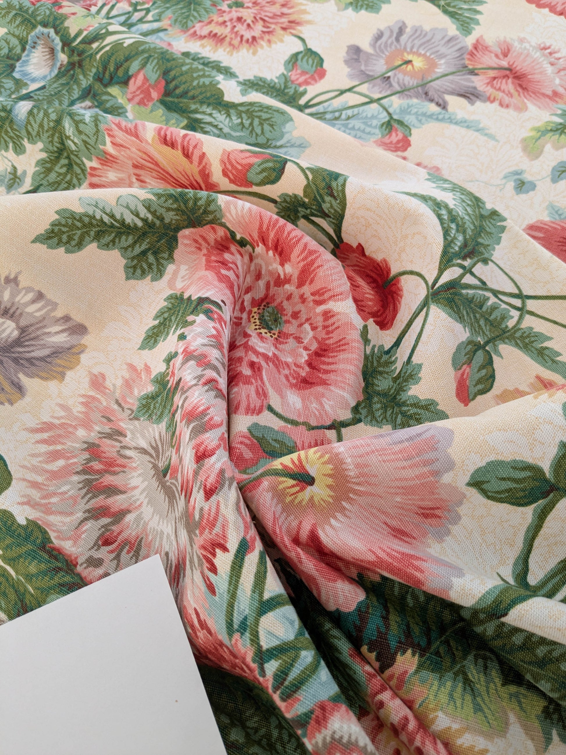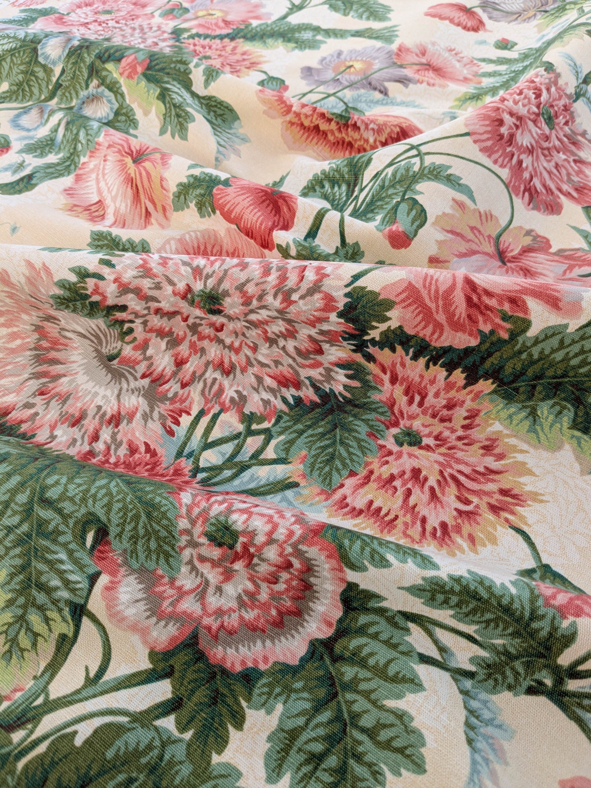 Thames Large English Garden Dalia Poppy Bouquet Print Pink Green Red on Maize Gold 1886
