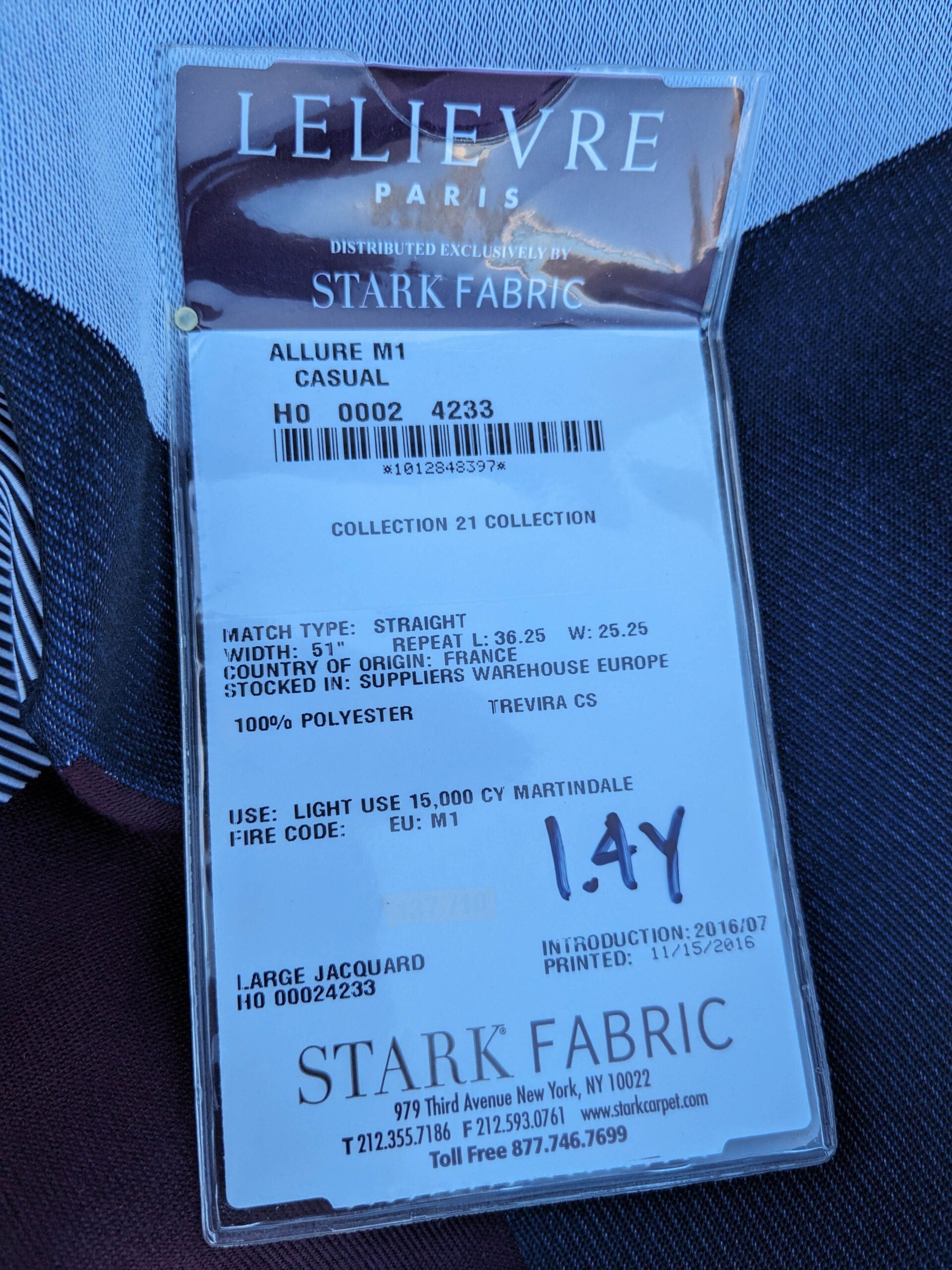 Fiber, repeat, width, weight, country of origin, WHOLESALE price/yard:
