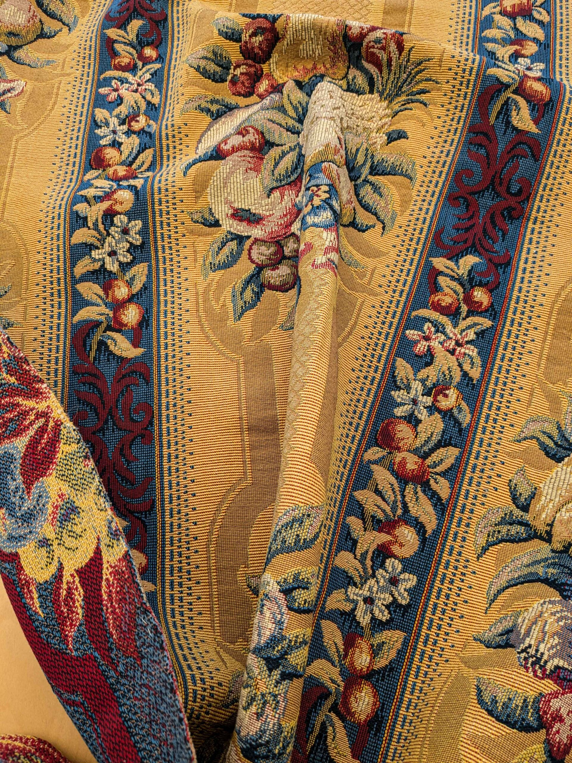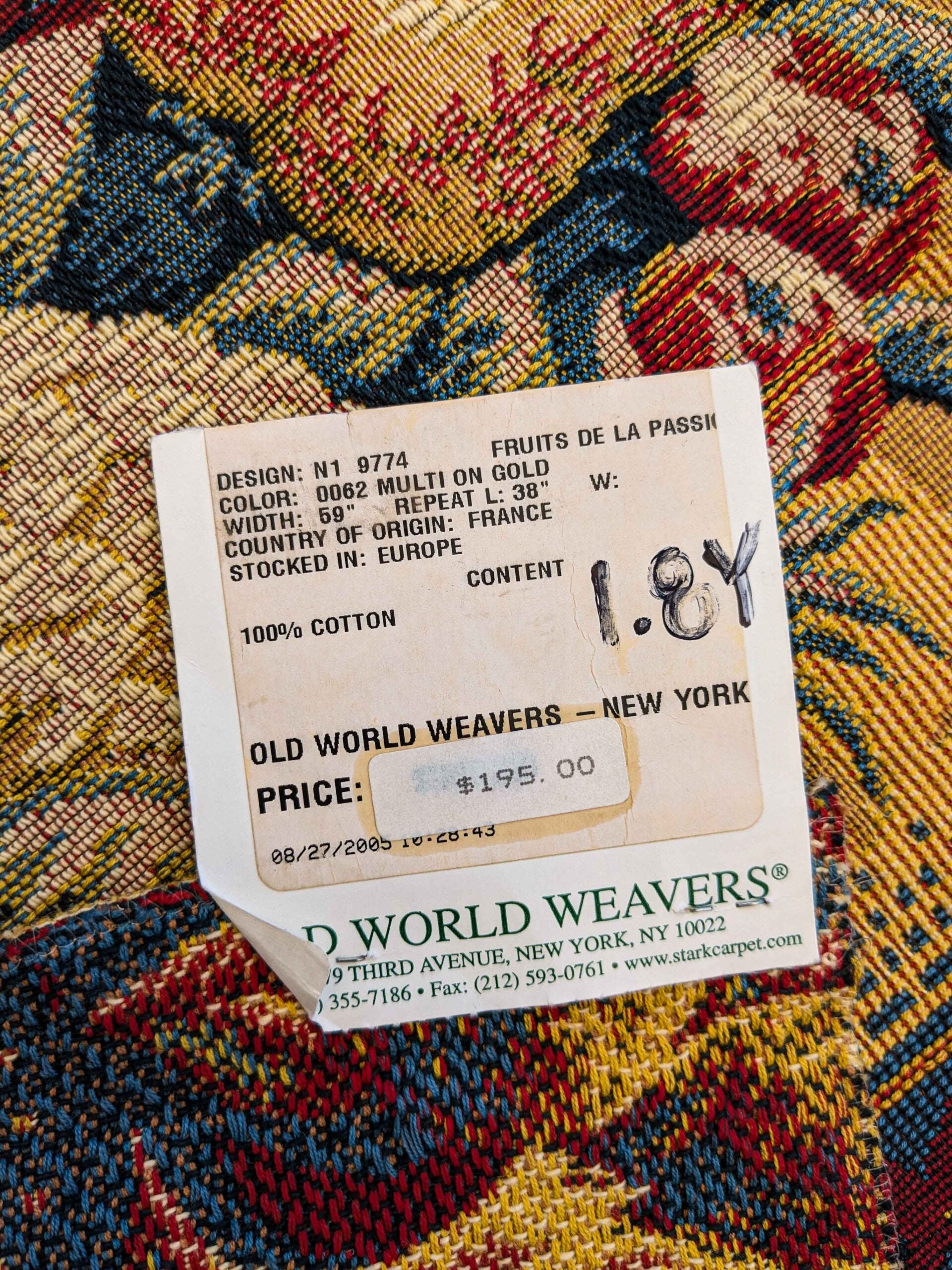 19 EV36 Scalamandre Fruits De La Passion Multi on Gold Stripe Cotton Botanical Neoclassical 1.8 yds x 28"W