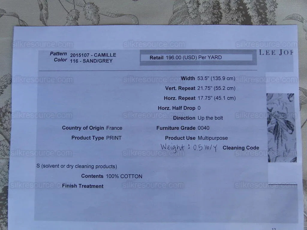 Lee Jofa printed Camille on best cotton in France where some of the best printing artisan mills produced some of the most artist work.