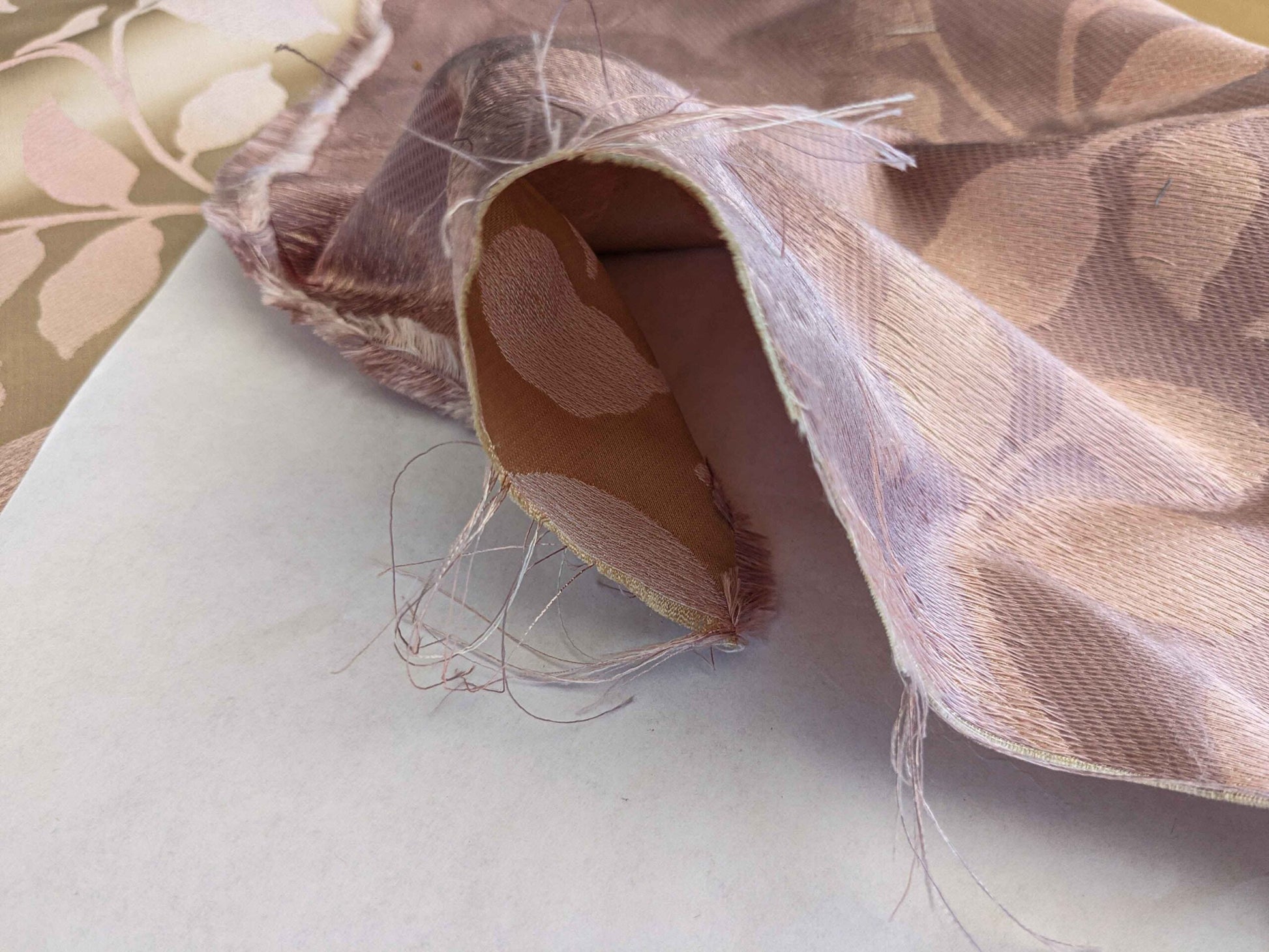 Weight: medium heavy weight silk damask. About 0.5lb/yard. Soft, yet durable enough for upholstery purpose