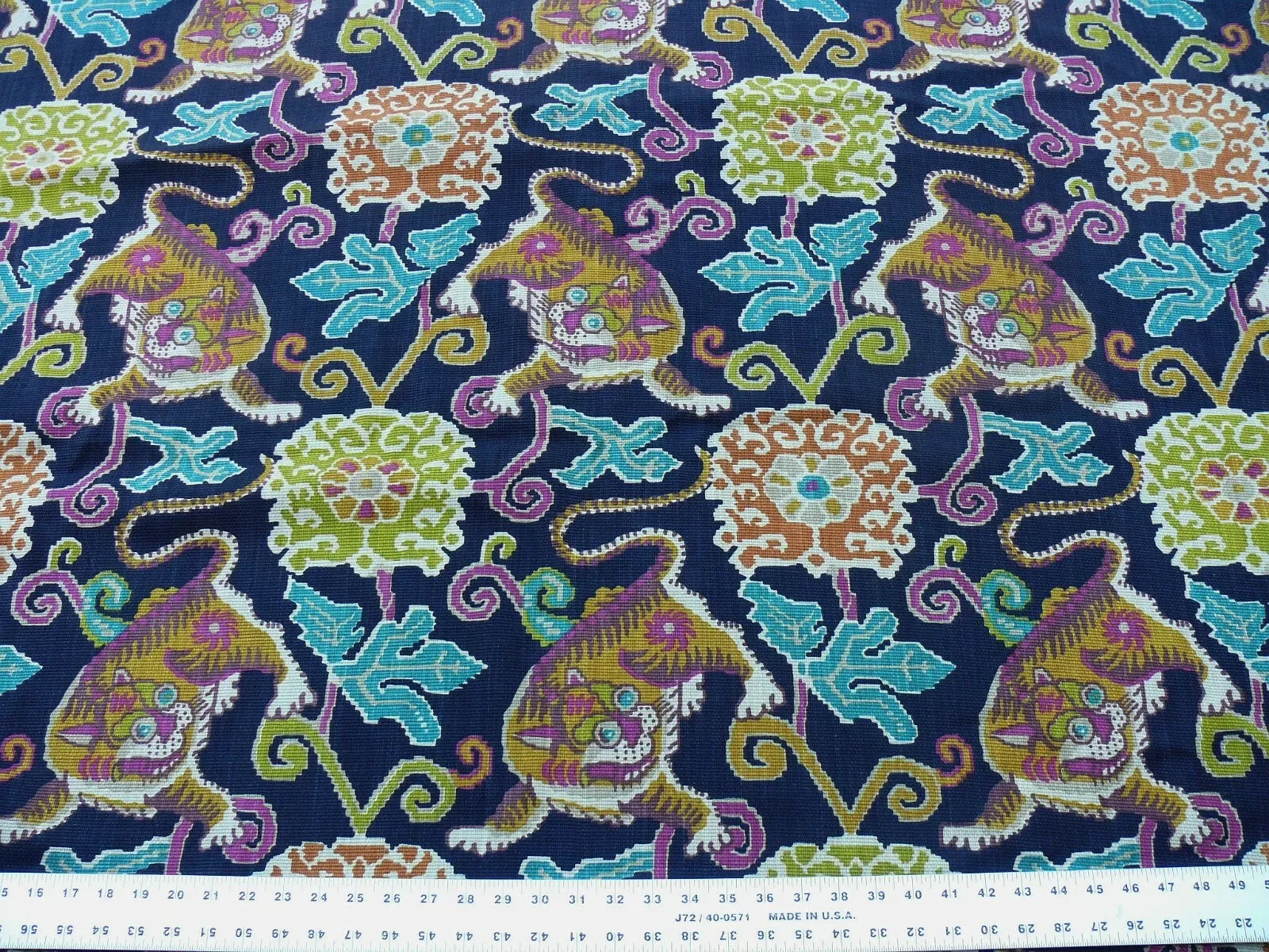 1Yard Shishi Tiger on Peony Cloud 100% Cotton Black Turquoise Pink MSRP USD88/yard