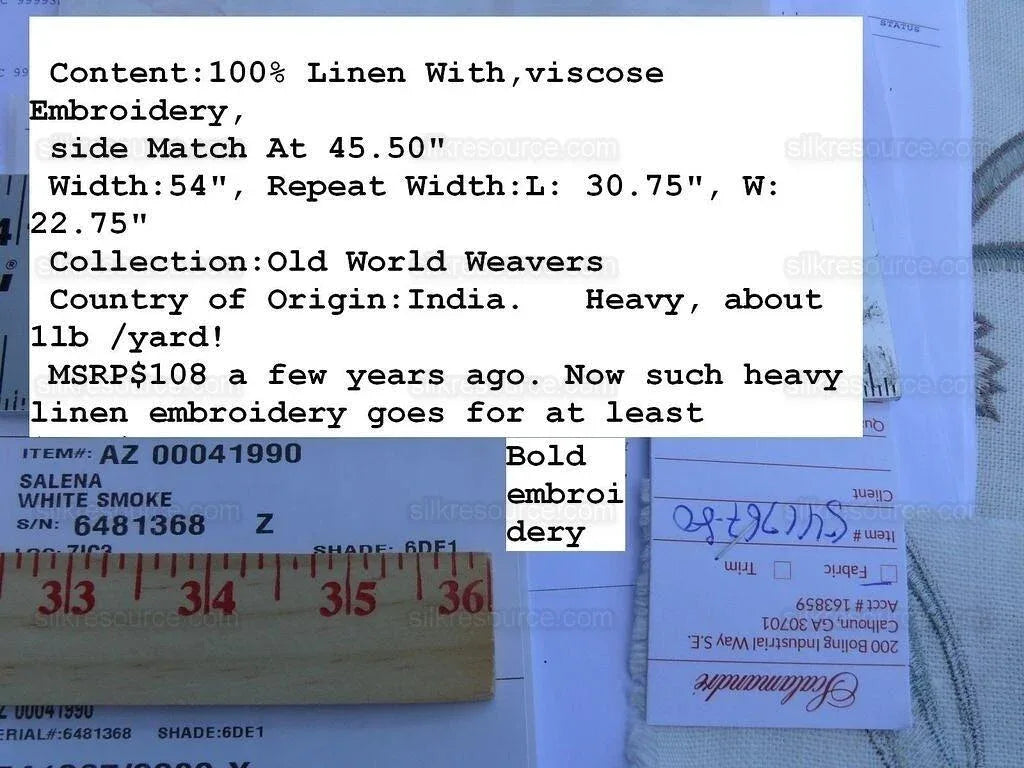 1yd Scalamandre Embroidery Peony Salena "white Smoke"MSRP USD 108y
