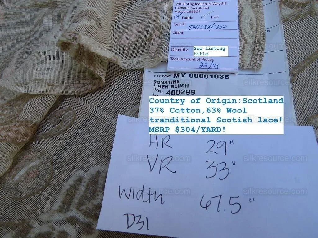 1yd Scalamandre Scottis Lace Sonatine Linen..