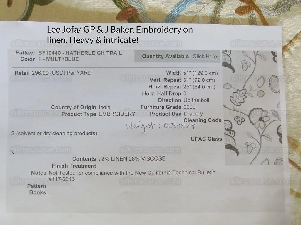 By Yard Lee Jofa Hatherleigh Trail Multi/blue Embroidery MSRP USD 296y