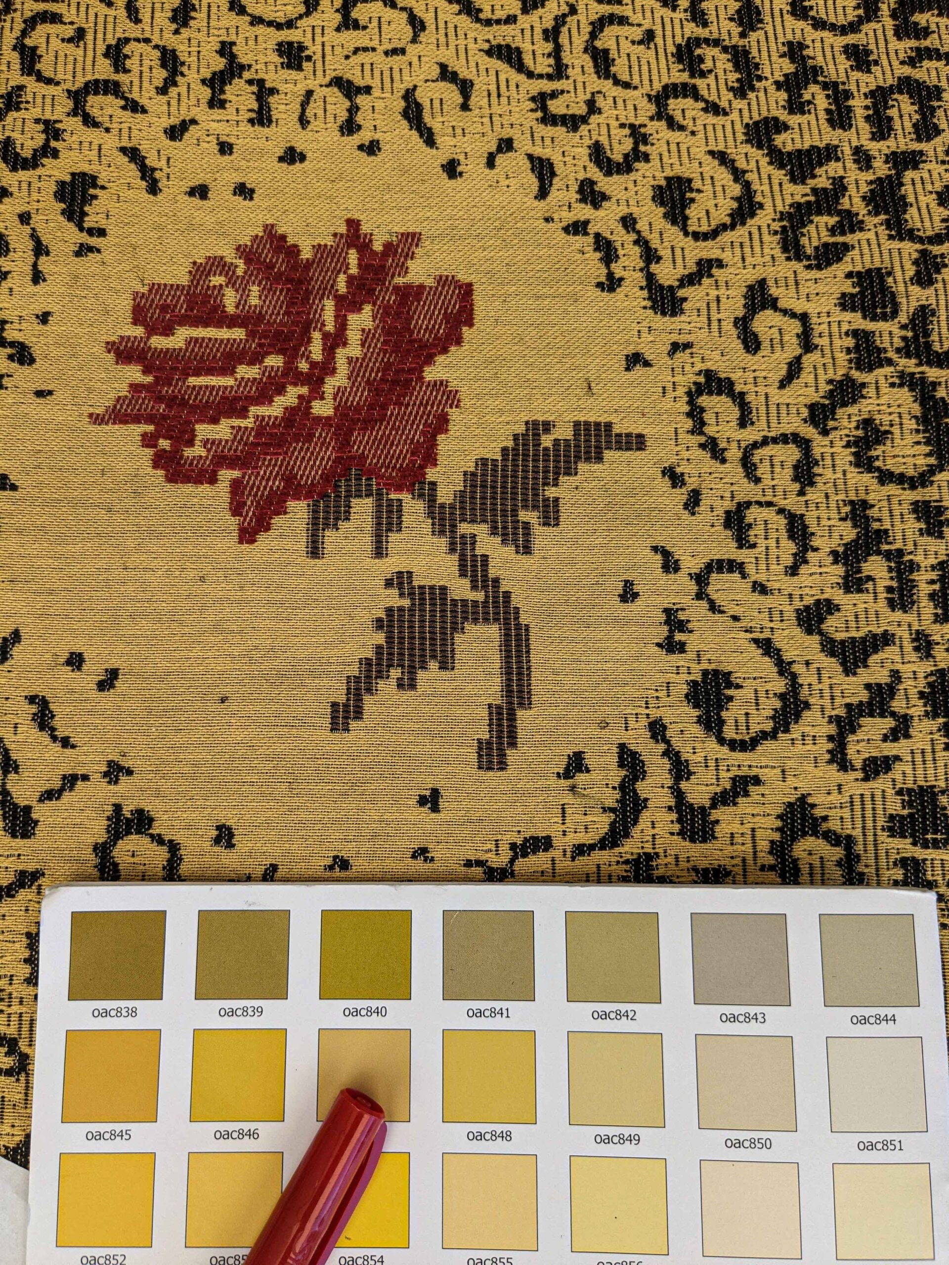 Color, repeat, fiber content, applications & retail price: please see the printout in photo.