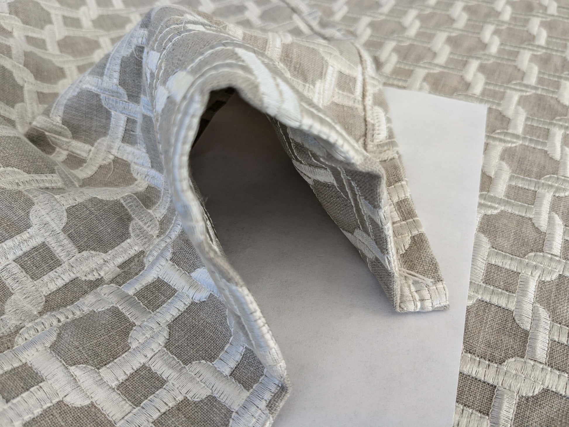 This sophisticated fabric features a refined geometric pattern reminiscent of architectural gridwork. The intricate lattice design is woven with subtle texture and a hint of sheen, adding depth and visual interest. Perfect for creating a modern and stylish look.