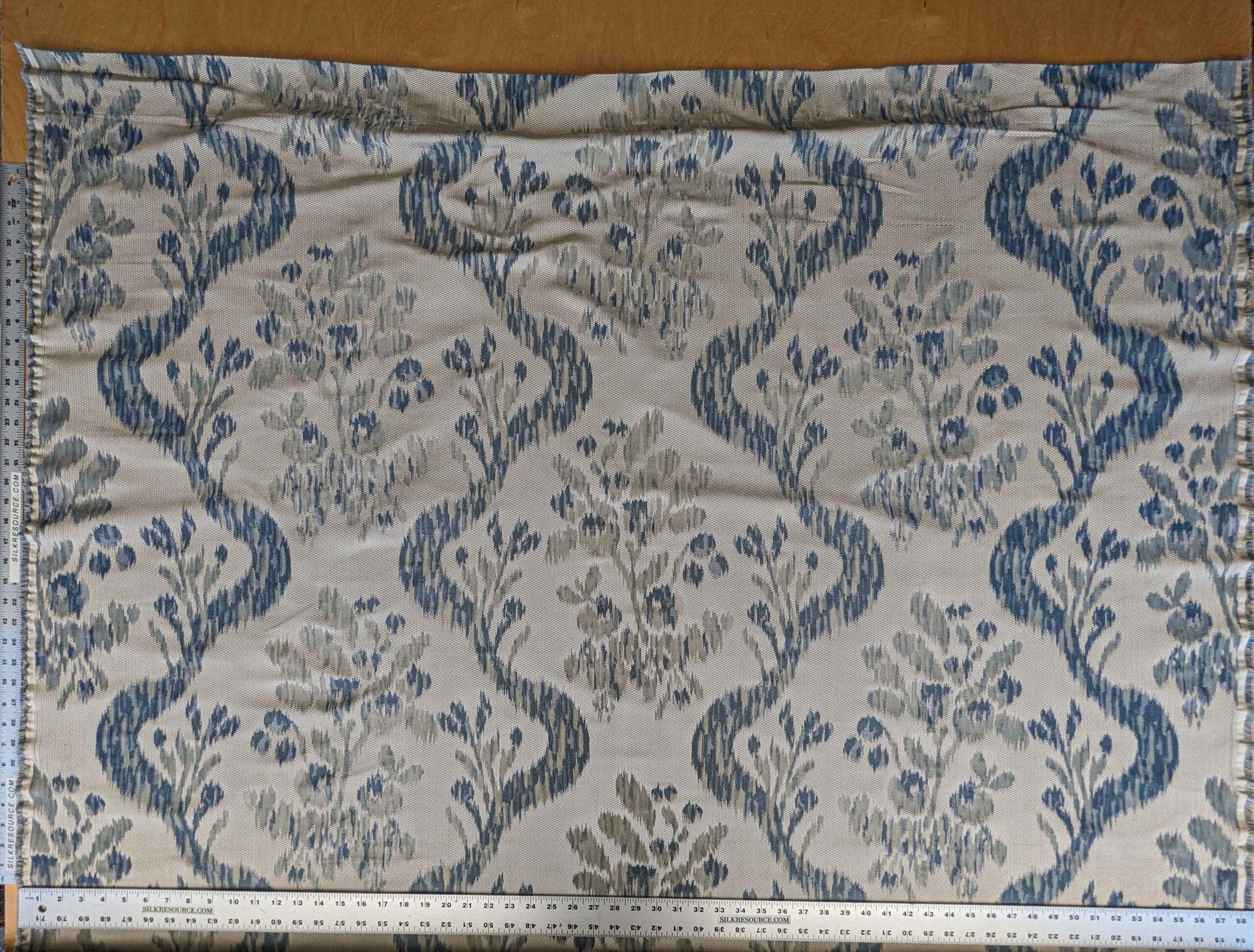 2.25y Scalamandre Visby Beige Blue Silver White Old World Weavers Silk Lampas MSRP USD 895/Y