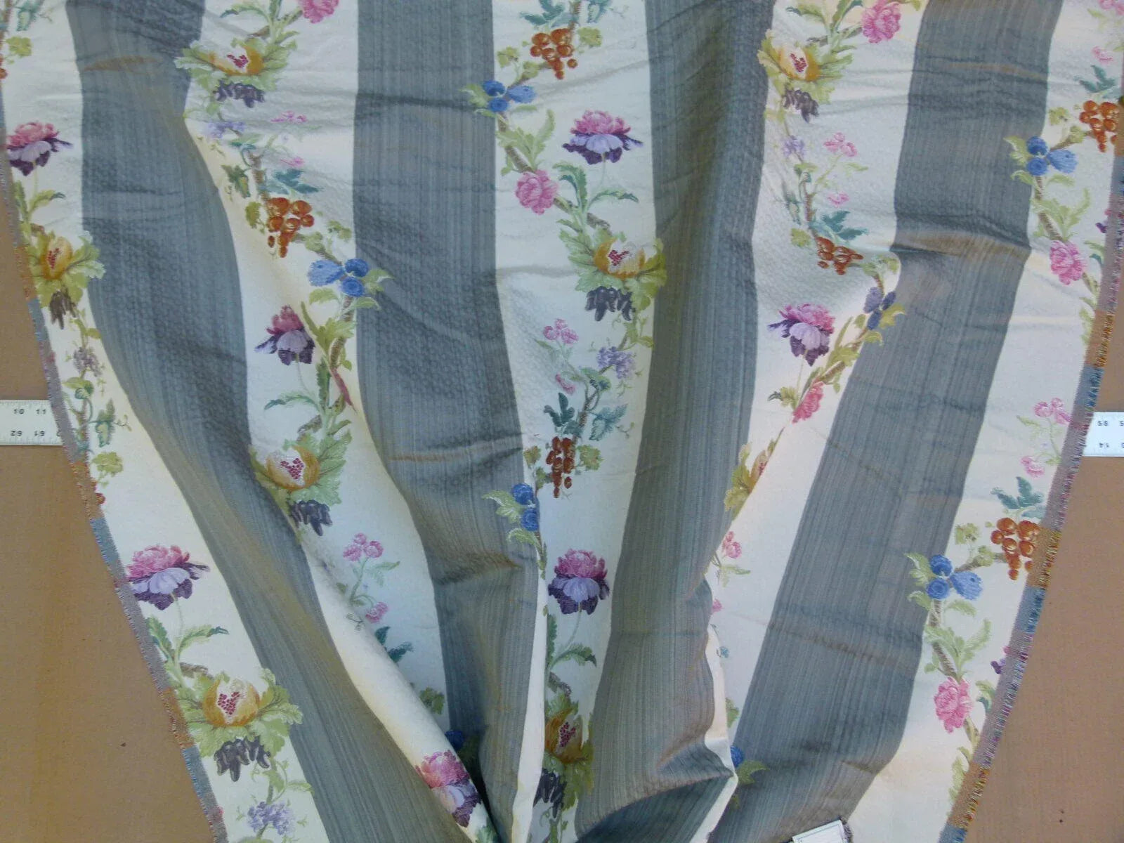 2.2y Scalamandre Colony Ravello Grigio Grey Cream Pink Purple Green Red Floral Fruit Woven Stripe MSRP USD 390/Y