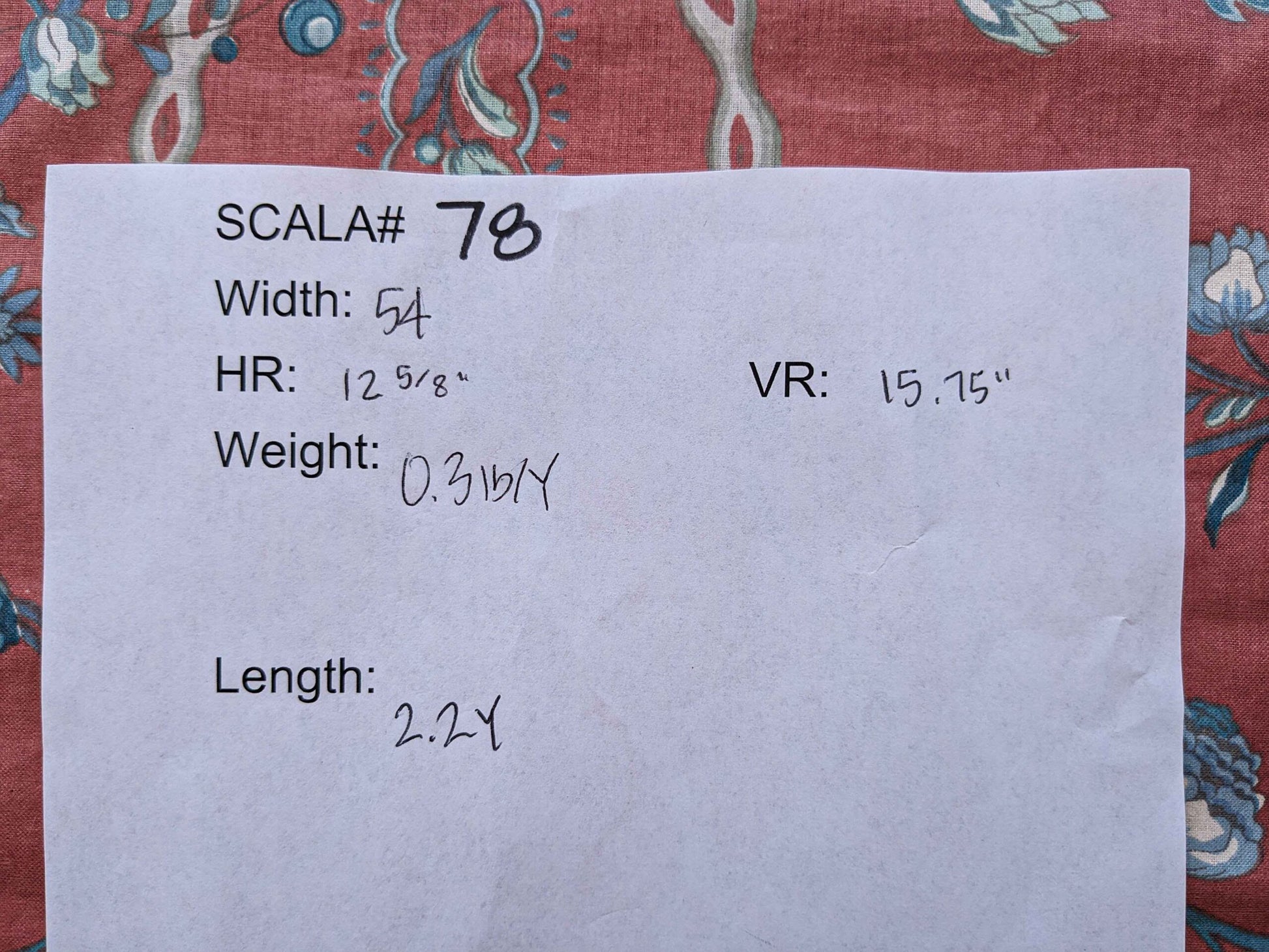 Color, repeat, fiber content, applications & retail price: please see the printout in photo.